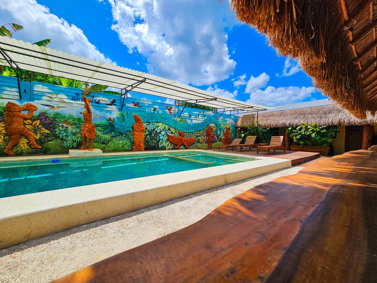 Un hotel boutique de arquitectura rústica contemporanea con mucha personalidad. Ubicado en una de las zonas más traquilas y accesibles de Bacalar, a 15 minutos a pie del centro y un par de cuadras de la costera. Con solo 3 habitaciones independientes, es un lugar con mucha privacidad lleno de espacios que invitan a la relajación y al descanso.