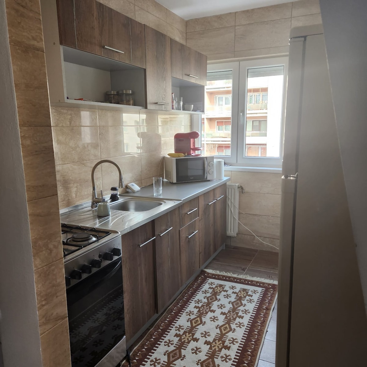Tá an stiúideo nua, geal agus galánta seo suite i gceann de na ceantair is mó a bhfuil tóir orthu in Bacău. Leis an árasán beag seo cuirimid rogha lóistín den scoth ar fáil duit. Tá an meall, ollmhargadh, bialanna agus caiféanna, iompar poiblí in aice láimhe. Tá 2 sheomra sa stiúideo agus tá sé oiriúnach do 3 dhuine ar a mhéad. Tá sé feistithe le: Wi-Fi, aerchóiriú, meaisín espresso (caife ar an teach), meaisín níocháin, cistin agus seomra folctha dea-fheistithe, féinseiceáil isteach. Tá páirceáil ar fáil.