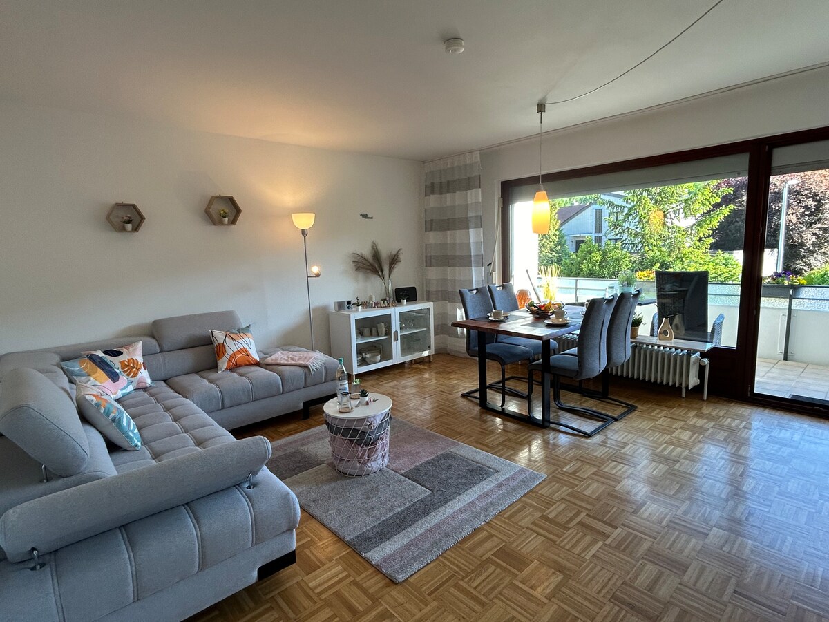 Cuireann an t - árasán cluthar, lánfheistithe dhá sheomra ag Kurhausstr. Cuireann 18 Wi - Fi saor in aisce agus balcóin mhór, linn snámha le limistéar sabhna díreach sa teach ar fáil! Tá ár n - árasán suite ar thaobh na láimhe deise ar imeall na foraoise le rochtain ar chosáin fánaíochta éagsúla agus ráthaíonn sé síocháin agus scíth iomlán agus tugann sé léargas iontach ar fhoraois agus ar an dúlra. Bain sult as an ngrian tráthnóna ar ár mbalcóin mhór atá dírithe ó dheas nó féach ar an bhfiadhúlra ag luí na gréine ag luí na gréine agus éist leis an Riefenbach.
