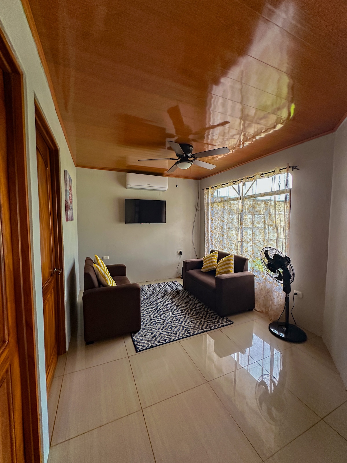 Disfruta de este alojamiento tranquilo y céntrico con piscina compartida. Cocina equipada con todo lo necesario para cortas y largas estancias. Internet de alta velocidad 100Mbs con zona de trabajo. Smart TV con cuenta de Netflix incluido. Parking privado cubierto con cámaras de vigilancia. Excelente ubicación céntrica y a poca distancia andando de tiendas y restaurantes. Está a 5 minutos en coche del Parque Nacional Marino Ballena, de la playa, y de rutas hacia la selva y las cascadas.