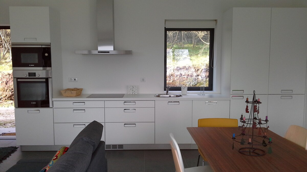 Teach tuaithe nua - aimseartha le gairdín mór agus cúlchlós ainmhithe atá oiriúnach do shos ó ghluaiseacht na cathrach. Tugann na laethanta is fuaire cuireadh do thráthnóna cois teallaigh inar féidir leat a bheith cosy agus féachaint ar an damhsa tine agus an t - adhmad ag dó. Is áit chiúin í ina bhfuil comharsanacht mhaith. Is tiomáint 10 nóiméad é lár stairiúil Viana do Castelo chomh maith le roinnt tránna ar nós trá Cabedelo, áit ar féidir leat spóirt uisce éagsúla a chleachtadh amhail surfáil, clársheoltóireacht nó céaslóireacht. Cúig nóiméad ó ollmhargaí.
