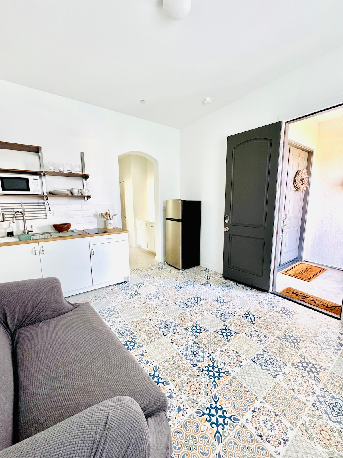 Studio - Relax Oilimpeach & scíth a ligean sa bhungaló ceardaí socair galánta seo. FEIDHMEANNA AC. Cuairt a thabhairt ar theaghlach nó anseo ar ghnó? Páirceáil sráide saor in aisce. Lonnaithe go lárnach in aice leis an aerfort, Coláiste Bakersfield, agus formhór na n - ospidéal mór. Maisithe go deas, gleoite agus dea - fheistithe, tá gach rud a theastaíonn uait sa stiúideo lena n - áirítear AC feidhmiúil (deir léirmheas amháin go raibh sé amuigh, ach bhí cadhnraí painéil AC go dona). TABHAIR FAOI DEARA: Tá príomhtheach amháin eile ar an réadmhaoin seo, tá a bhealach isteach príobháideach féin ag gach ceann acu.