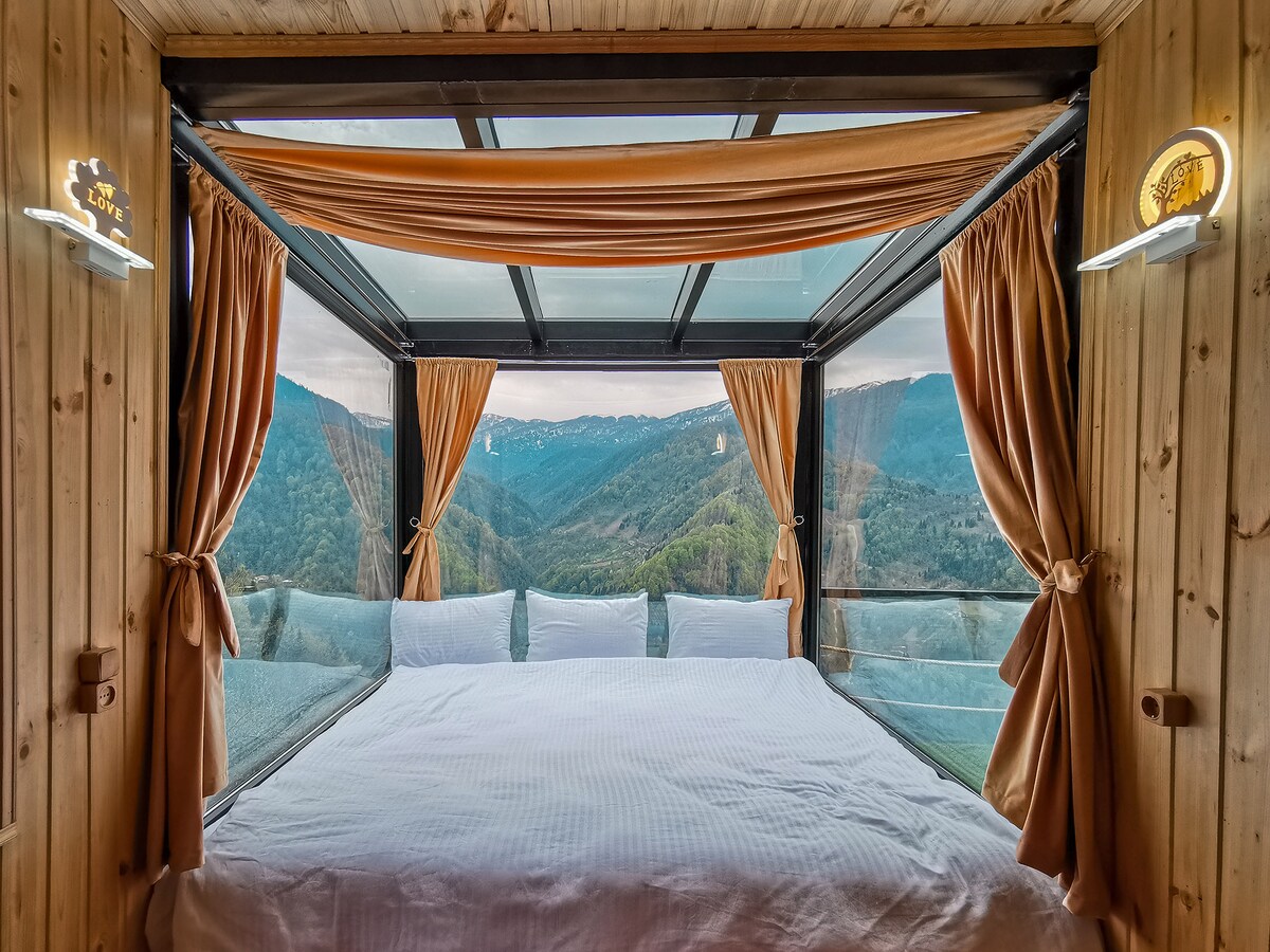 Éalaigh go dtí an cábán gleoite seo atá neadaithe in áilleacht shuaimhneach Bakhmaro. Agus foraois bhuaircíneach taobh thiar de agus abhainn mhín os a comhair, cuireann an tearmann síochánta seo an saoire ghearr dheiridh ar fáil do chairde agus do theaghlaigh (suas le 8 n - aoi). Na rudaí a thaitneoidh go mór leat: - Dúisigh go dtí boladh úr na gcrann giúise, radhairc iontacha ar an bhforaois agus fuaimeanna suaimhneacha na habhann ag sileadh in aice láimhe. - Bunáit iontach chun iniúchadh a dhéanamh ar chosáin, ar fhoraoisí agus ar shléibhte uathúla Bakhmaro - Suíomh agus maisiúchán tuathúil - Na saoráidí riachtanacha go léir