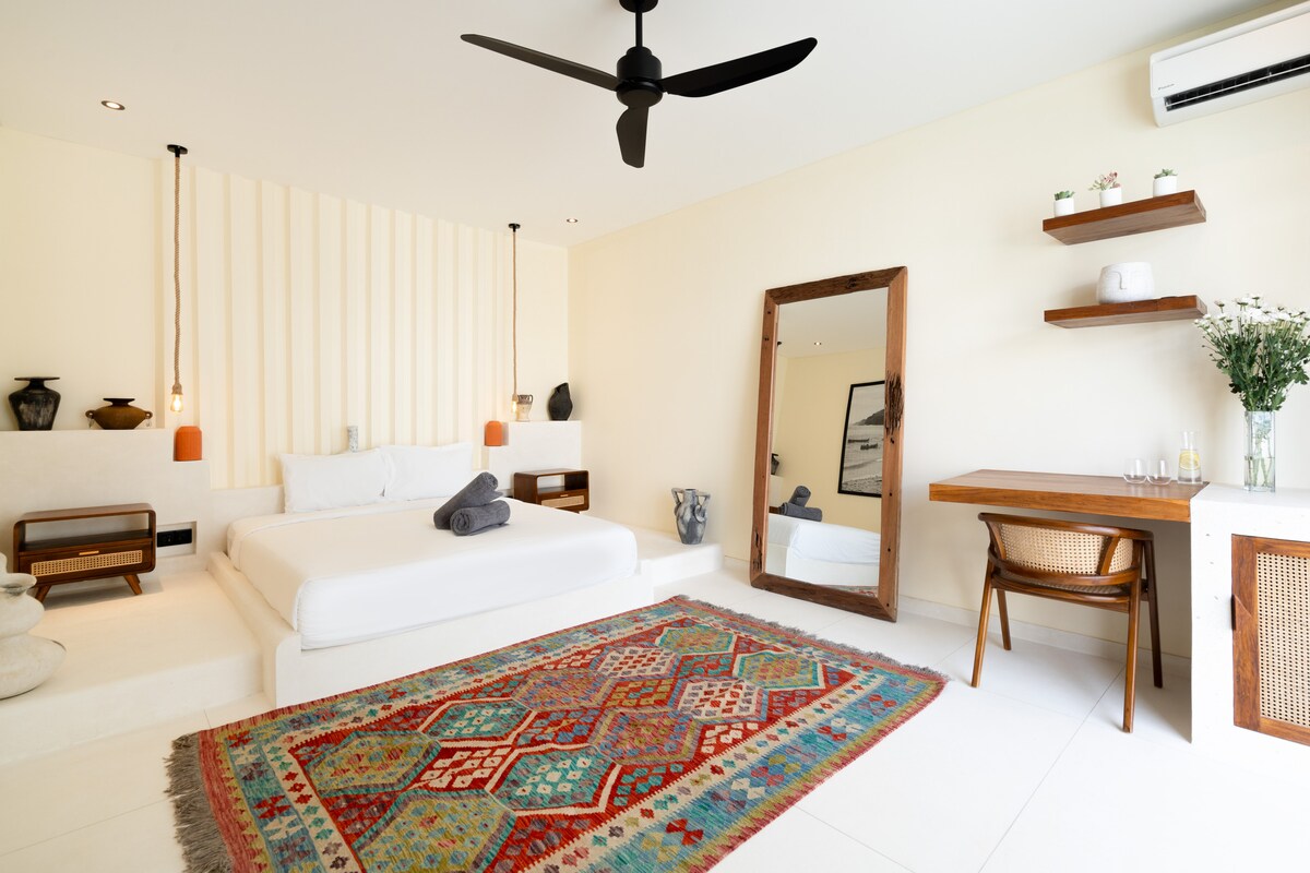 * Stiúideo galánta nua - aimseartha ina bhfuil cistin lánfheistithe, athchóirithe go hiomlán go luath sa bhliain 2025 *Príomhshuíomh Canggu - Díol Spéise Mór Laistigh de 1 km *Rochtain ar Linn Snámha Roinnte, Giomnáisiam agus Limistéar Scíthe * Idirlíon Ardluais (100 Mbps) * Teilifís Chliste le Netflix * Leaba Sár - Rí - Mhéide (200 x 200 cm) *Tíos Laethúil Rothar, Scútar agus Carranna ar Cíos atá ar fáil * Foireann Tiomnaithe na Deisce Tosaigh Réidh le Cuidiú * Slándáil 24 uair an chloig