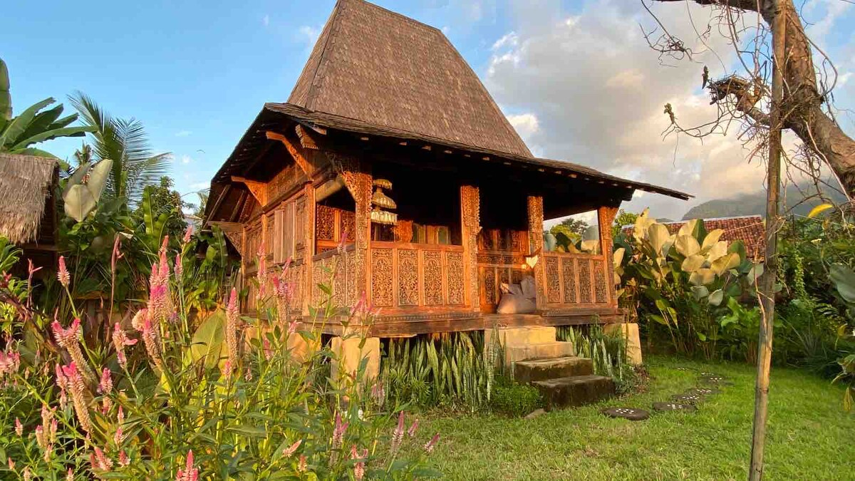 *TÁ WI - FI IONTACH AGAINN (50mbps++) AGUS 4 RÉADMHAOIN ÁLAINN AR AN SUÍOMH. CLICEÁIL AR MO PHRÓIFÍL CHUN NA 3 THEACH EILE A FHEICEÁIL I GCÁS GO BHFUIL AN CEANN SEO GNÓTHACH LE LINN NA NDÁTAÍ ATÁ UAIT * Ar chodail tú riamh i saothar ealaíne? Ó cheardaithe Java go feirmeoirí thuaisceart Bali, tá an Gladak snoite galánta 50 bliain d'aois seo in Sunset Sala. Déanta go hiomlán d'adhmad teak, ní raibh aon tairní ag teastáil le haghaidh atógáil an tí uathúil seo - a bhallaí snoite lámh go scléipeáilte le chéile.