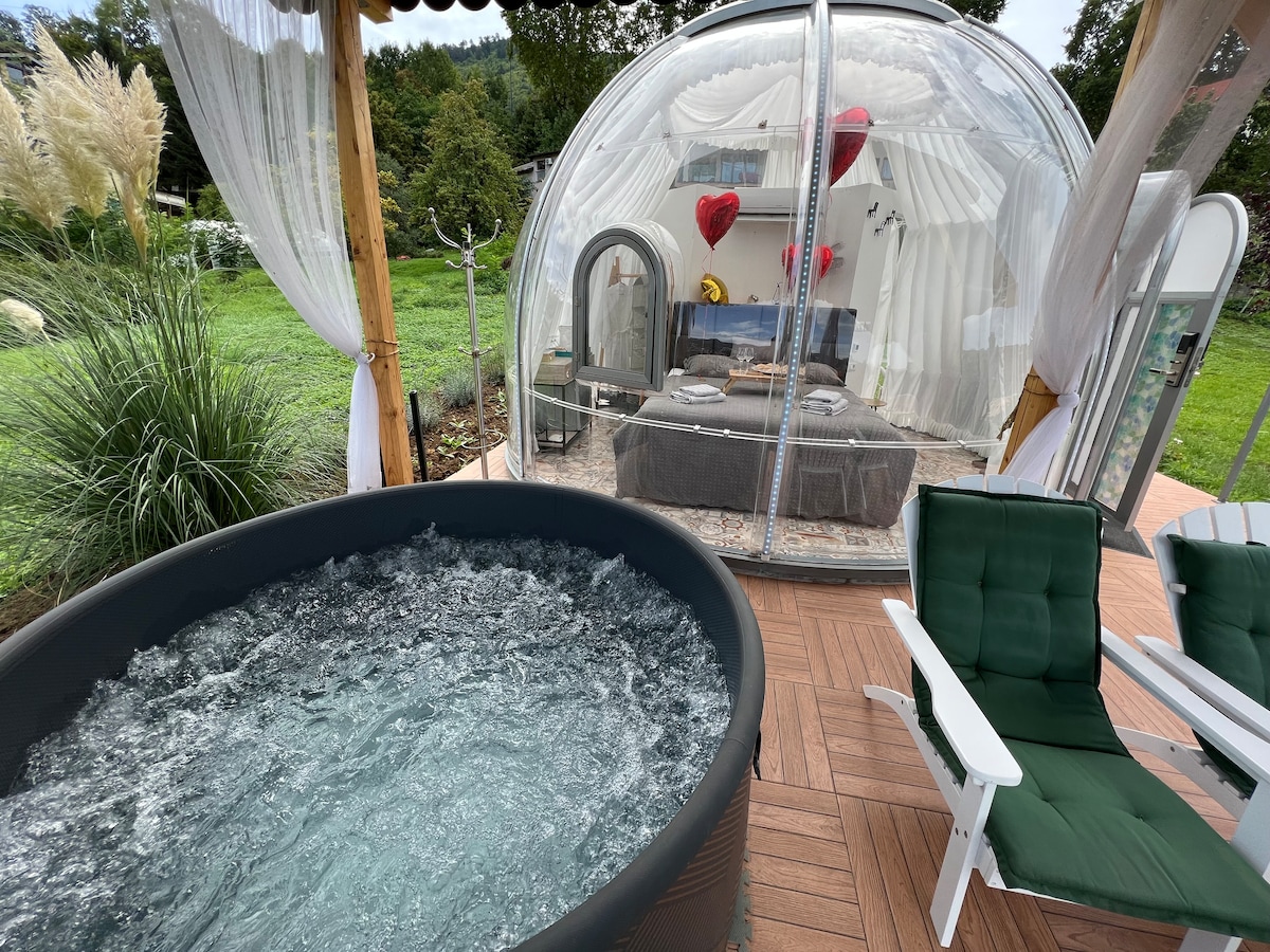 Fáilte chuig ár dteach glampála, Cupola. Más mian leat blaiseadh a fháil de do bhealach nua le do shaoire, tá tú in áit cheart. Is spás seentrough é Cupola le cuirtíní bána galánta, atá suite i Sairéavó, 10 nóiméad ar shiúl ó lár na cathrach, ag siúl. Tá leaba agus seomra folctha ar mhéid an rí ann, mar aon le mionchuisneoir agus citeal. Le haghaidh mothú speisialta, cuireann cupola tobán te lasmuigh ar fáil le radharc iontach ar an gcathair, timpeallaithe ag an dúlra. Cas aon séasúr isteach i ndraíocht agus codail faoi réaltaí.