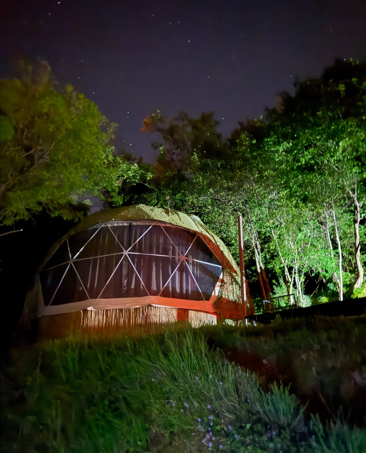 Acest dome geodezic a fost gândit pentru noi, ca refugiu personal, dar dorința altora de a-l experimenta ne-a inspirat să îl închiriem. Vei găsi aici un spațiu confortabil, plin de lumină și cu o energie bună. Dotat cu cadă freestanding, ciubăr ofuro privat inclus, terasă exterioară si vatră pentru foc. Locatia este gandită pentru o escapadă linistită, unde te poti bucura de o experientă autentică si deconectare totală. Clasificată oficial cu 3 stele de Ministerul Turismului. ✅ ⭐️⭐️⭐️