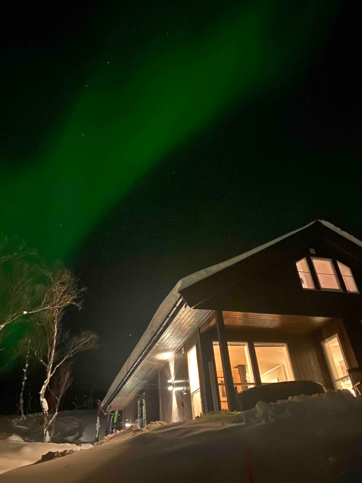 Moderne og nyoppført hytte med stort allrom og fantastisk utsikt gjennom vinduer fra gulv til tak. Nyt morgenkaffen i godstolen, fyr i ovnen og utsikten før ski out. Hyttekontor fungerer veldig bra med rask fiberlinje. Opplev Aurora Borealis fra terrassen. Fyr opp grillen og bålet under nordlyset. Eller se favorittserien på stor TV i stua. To av soverommene har også TV med apper. Ingen av TV`ene har lineær-TV. Håndduker og sengklær inkludert Lader for bil tilgjengelig for gjester.