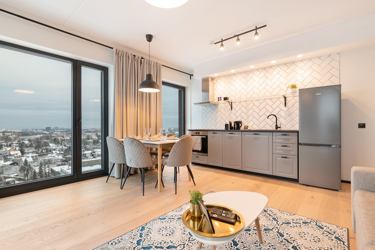 Apartament na 16. piętrze w samym centrum Szczecina to idealne miejsce na relaks. Pokój wyposażony jest w łóżko king size, telewizor i kominek elektryczny, który tworzy przytulny klimat. Aneks kuchenny posiada piekarnik i płytę indukcyjną, a łazienka – nowoczesny prysznic. Goście mogą korzystać z tarasu widokowego na 27. piętrze oraz strefy wellness z basenem, jacuzzi i dwiema saunami, zapewniającymi pełen komfort i odprężenie. Awaria indukcji, dostępna tylko płyta turystyczna. Naprawa do 23.02.
