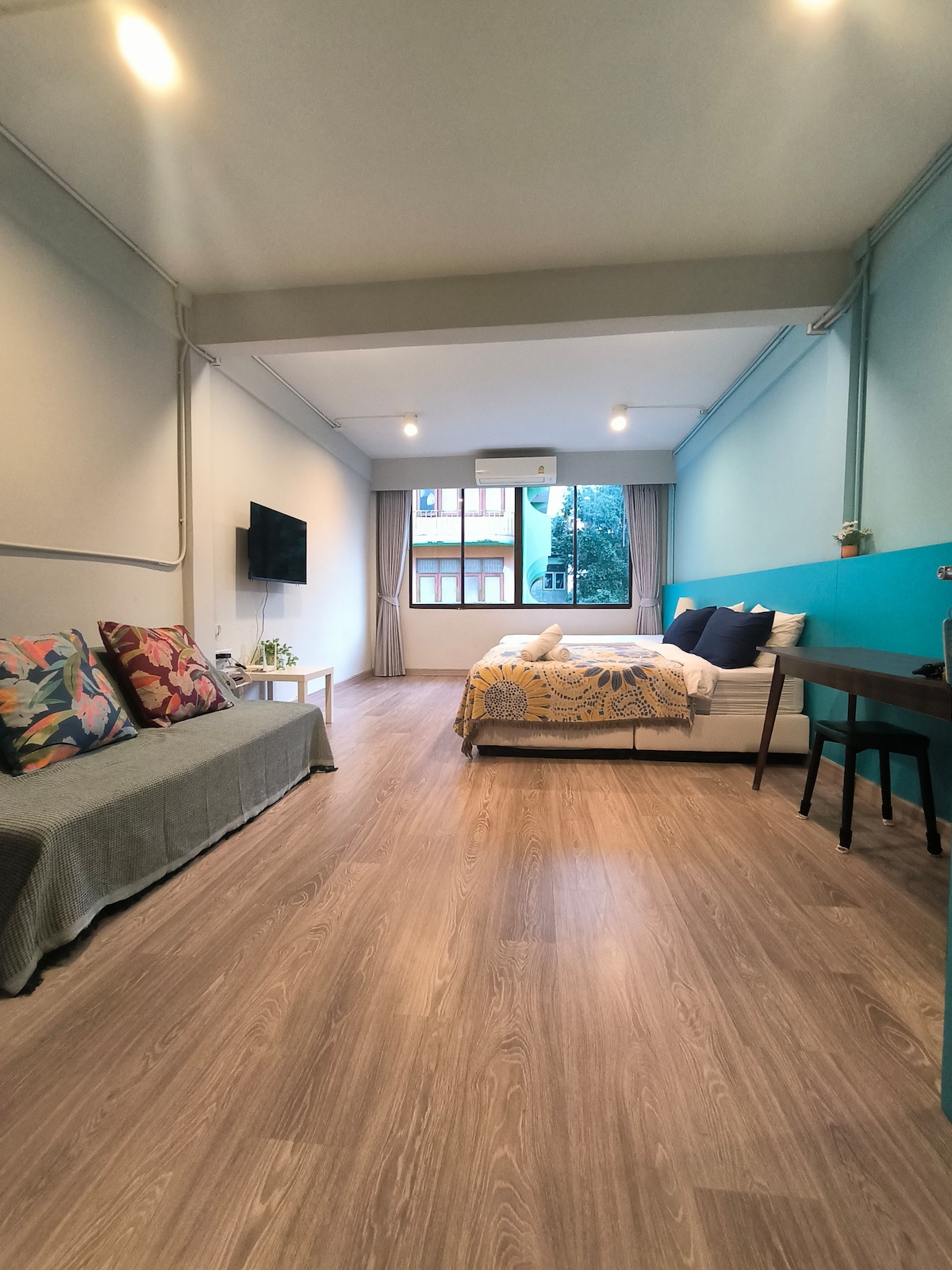 Lig do scíth cois na canála agus lig do scíth i gcomharsanacht shíochánta — níl ach 5 nóiméad ó Bhóthar Khaosan, áit a bhfuil siamsaíocht bhríomhar oíche, bia áitiúil, agus ceol beo ag fanacht. Téigh ag spaisteoireacht chuig sainchomharthaí cultúrtha íocónacha Bangkok. 🌿 Balcóin le radharc na canála 🛏 Leaba bhanríona le seomra folctha príobháideach 🍳 Cistin dhlúth le cuisneoir agus earraí cócaireachta 🧼 Tuáillí, earraí níocháin & triomadóir gruaige curtha ar fáil Wi - Fi 📶 ardluais Siúlóid 🚶♀️ éasca chuig teampaill Foirfe do thaistealaithe aonair, do lánúineacha, nó do dhaoine cruthaitheacha atá ag lorg fanacht síochánta i gcroílár Bangkok stairiúil.