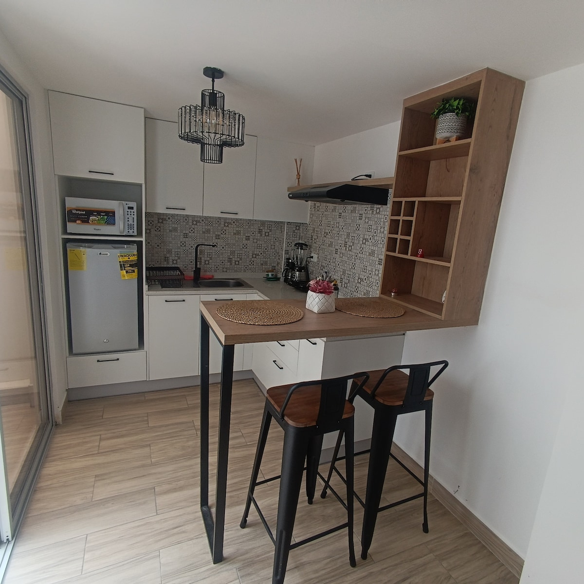 Árasán atá suite i lár Baños, 2 bhloc i bhfad i gcéin ó pháirc lárnach, bialanna, bainc, siopaí caife agus bealaí isteach do chonairí sléibhe. Tá seomra suí san árasán ina bhfuil puffs teolaí agus tolg cama, seomra bia, cistin ina bhfuil plátaí, uirlisí agus meaisín níocháin, agus an seomra leapa ina bhfuil leaba dhúbailte, tolg agus spás oibre ina bhfuil Wi - Fi 60MBPS, agus seomra scíthe