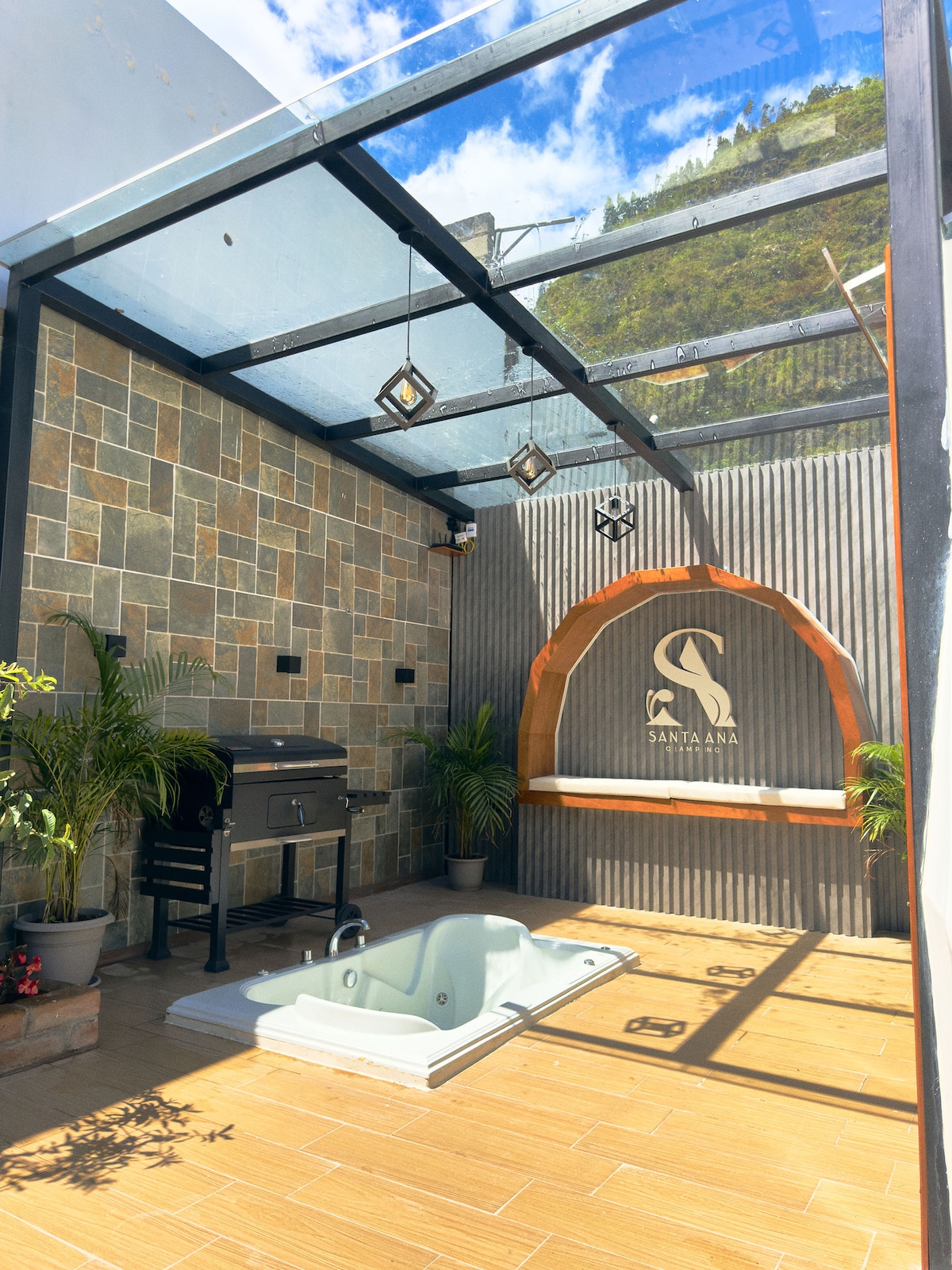 Déan iniúchadh ar an eispéireas uathúil a bhaineann le hóstáil inár gcruinneachán sómasach gloine agus stroighne (ní cruinneachán traidisiúnta), is cumasc foirfe muid den nua - aoiseacht agus den dúlra. Níl ach 5 nóiméad ó cheo agus ó fhuadar lár na cathrach, ach tumtha i suaimhneas an dúlra, músclóidh tú gach maidin le fuaim shéisiúil na n - éan. Domo feistithe a thairgeann saoráidí den scoth i suíomh thar na bearta. Bí ar do shuaimhneas agus ar do shuaimhneas inár gcruinneachán Santa Ana Glamp. Fíon agus súilíneach san áireamh