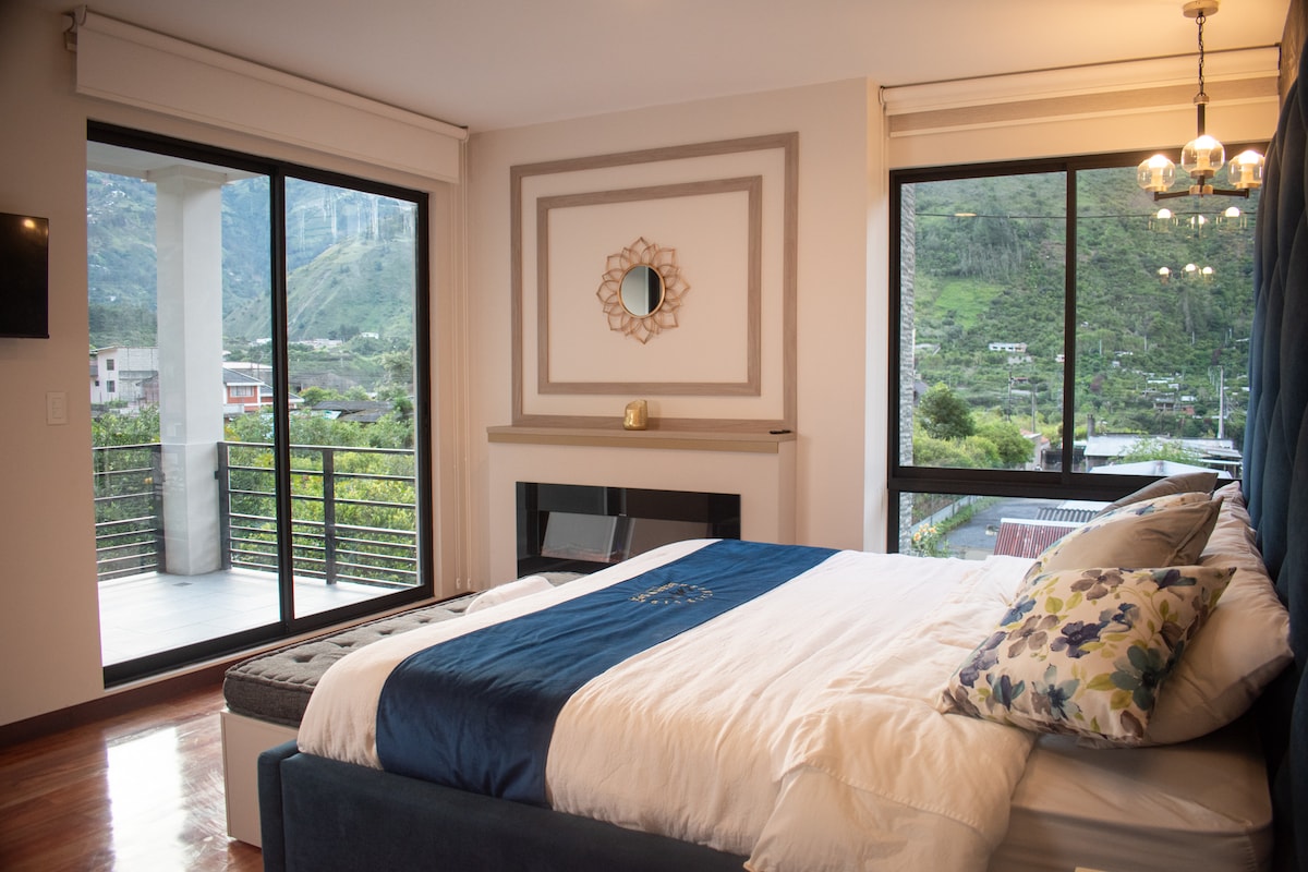Is teach cábáin é, atá suite 7 nóiméad ó lár Baños, atá lán de limistéir ghlasa agus de ghairdíní ,magairlíní agus éagsúlacht na n - éan, timpeallaithe ag sléibhte agus radharc iontach ar bháisín abhann Pastaza, uathúil le haghaidh scíthe agus scíthe teaghlaigh. Mar eolas dá gcuid eolais ní mór dóibh 38 céim de stroighin agus de chloch thuathúil a dhreapadh, sa deireadh beidh luach saothair acu ar an radharc iontach ar Abhainn Pastaza ó thuas agus lena linn hidreach uisce te a insealbhú le déanaí.