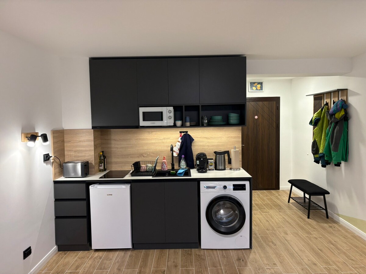 Fáilte chuig do shaoire ghearr fhoirfe in Bansko! Bain sult as fanacht compordach sa stiúideo nua-thógtha agus nua-fheistithe seo atá achar siúil ón ardaitheoir gondala, ó na cosáin foraoise, ón sliabh, agus ó chathair bheoga Bansko. Dearadh an stiúideo le haghaidh scíthe agus táirgiúlachta araon, agus tá spás oibre tiomnaithe agus idirlíon ardluais ann, rud a fhágann go bhfuil sé foirfe don chianobair nó do thréimhsí fanachta níos faide. Foirfe do thurais sciála, d'fhánaíocht, nó do shaoire shuaimhneach ar shliabh le gach compord an bhaile.