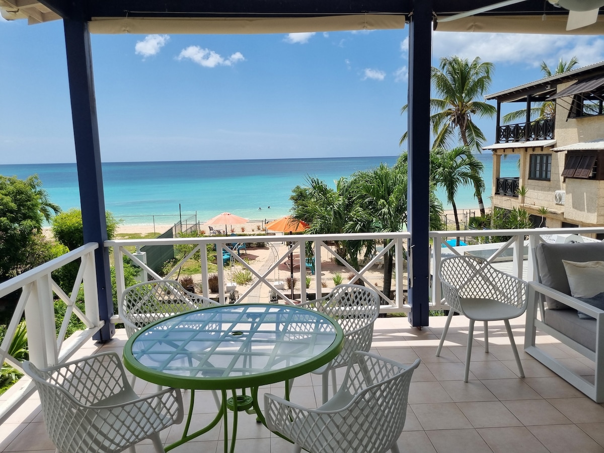Níl an t - árasán iontach seo ar imeall na farraige ach céimeanna ó Bhearna St. Lawrence agus tá radhairc iontacha ar an bhfarraige sa Mhuir Chairib. Tá trí sheomra leapa fairsinge, áit suí agus bia plean oscailte, cistin lánfheistithe, agus paitió príobháideach iontach le radhairc áille ar an árasán aerchóirithe go hiomlán. Téigh ag spaisteoireacht trí na gairdíní trópaiceacha agus síos go dtí an trá - tá snámh go hálainn leis an turtar ó am go chéile agus tá sé le feiceáil ar bhruach gainimh íseal atá go leor spraoi le siúl amach air.