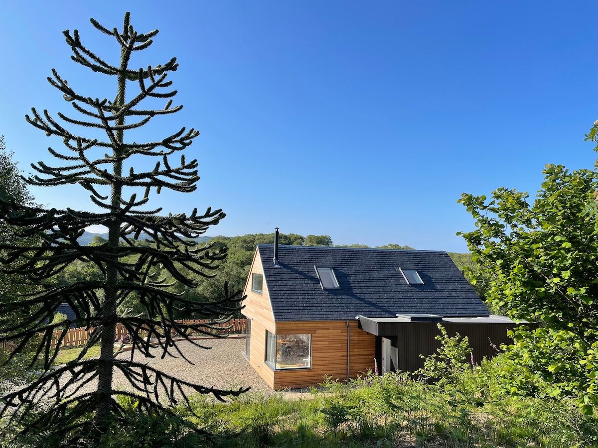 Tá an cábán uathúil seo tógtha ag dearthóir agus déantóir comh - aireachta áitiúil le compord agus só mar thosaíocht. Sa chábán uathúil ina bhfuil tolglann, cistin ina bhfuil fearais, seomra leapa rí den scoth, seomra fliuch agus deicáil fhairsing le tobán te. Suite go hard ar thaobh an chnoic, is féidir leat do scíth a ligean agus taitneamh a bhaint as radhairc lánléargais uathúla ar shliabhraon Oban agus Glen Coe. Déanann an Cábán Dubh an spás is fearr le haghaidh saoire ghearr rómánsúil agus mar bhunáit chun iniúchadh a dhéanamh ar 🏴chóstathiariontachnahAlban.