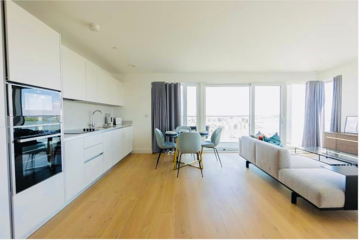 Éalaigh chuig ár dtearmann galánta dhá sheomra leapa ar imeall an uisce in Oirthear Londan bríomhar. Foirfe do suas le 4 aoi, tá radhairc áille ar an abhainn ó bhalcóin príobháideach sa tearmann suaimhneach seo, atá foirfe do dhaoine a bhfuil dúil acu sa ghrian. Bain sult as spás maireachtála nua-aimseartha agus suíomh lárnach chun an chuid is fearr de Londain a iniúchadh. Tearmann foirfe do lánúineacha nó do chairde.