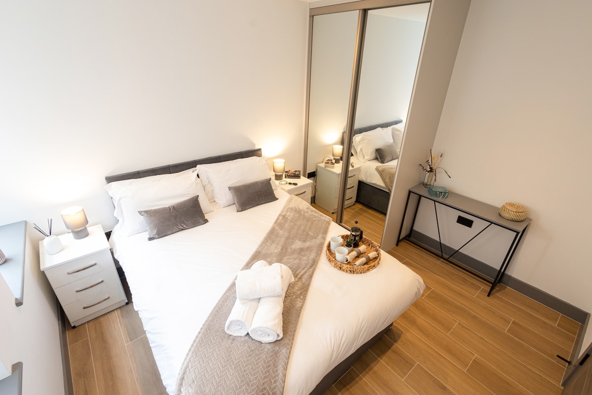 Beautiful 2B 2B flat where elegance meets modern luxury - designed with exceptional attention to detail throughout. Each element thoughtfully chosen — from premium appliances & glassware to soft furnishings & integrated technology to make your stay effortless. Egyptian cotton bedding, towels, & carefully selected décor create hotel-quality experience with the warmth and privacy of home. Whether enjoying the open-plan space or private outdoor terrace, it offers everything you need and more.