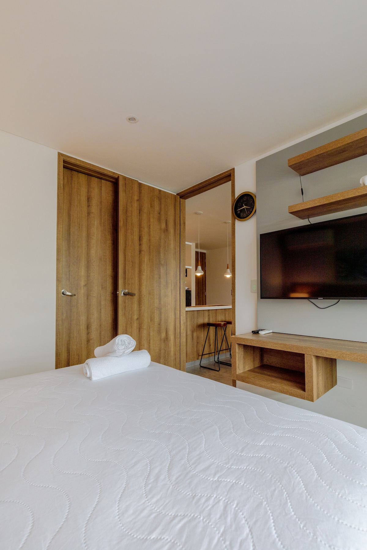 Fáilte chuig árasán stiúideo teolaí, atá oiriúnach do theaghlaigh, do chuairteanna leighis nó do thaistealaithe atá ag lorg compoird agus suíomh maith. 🌟 Lonnaithe in aice le clinicí, CC Viva, cógaslann agus siopa, i bhfoirgneamh ina bhfuil linn snámha, forhalla, caifitéire, fáiltiú 24/7 agus giomnáisiam príobháideach ($). Tá aerchóiriú, uisce te, Wi - Fi agus seomra folctha ann ina bhfuil barra sábháilteachta do dhaoine a bhfuil a soghluaisteacht laghdaithe. 🛁💨🧑🦽 Tá gach rud anseo deartha chun tú a chur ar do shuaimhneas. 💛