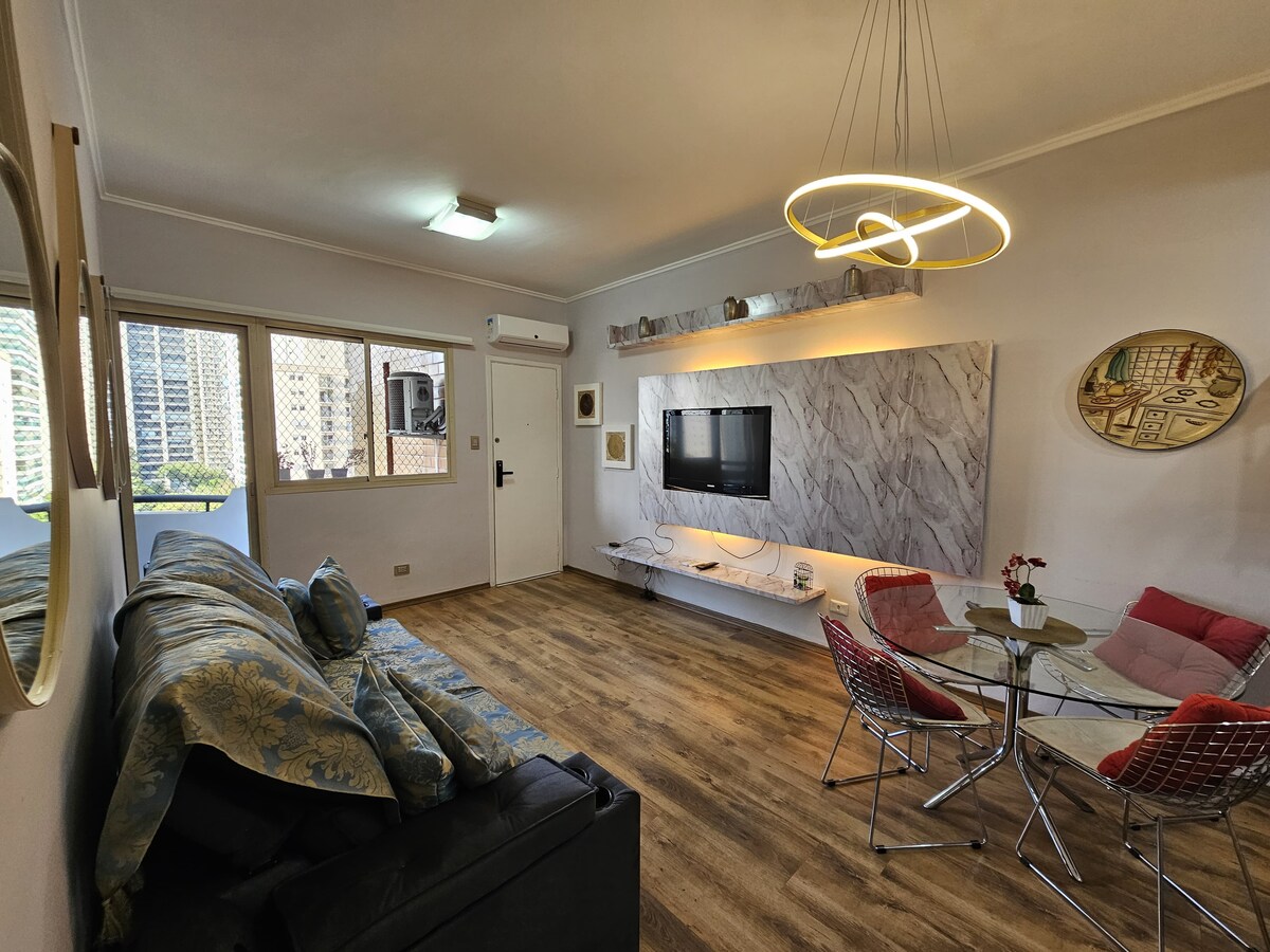 Bain sult as fanacht dodhearmadta san árasán sómasach seo, atá suite in Árasán iomráiteach Selenita Gnéithe Árasáin: - Seomra fairsing amháin ina bhfuil leaba dhúbailte agus leaba chúnta - Aerchóiriú - Claro TV, Netflix, Max, Telecine, agus Wi-Fi ardluais - Cistin lánfheistithe le fearais Saoráidí: - Linn snámha - Spórtlann aclaíochta - Níochán Mercadinho Suíomh: Tá Bethaville ar cheann de na ceantair is uaisle agus is fearr atá suite i gcathair Barueri.