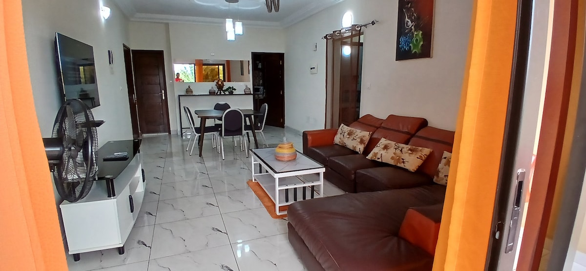 🍃An dteastaíonn uait éalú ó thorann Abidjan? Fáilte go dtí Ceanncheathrú Les P'tits Tours, villa suite, úr agus geal, atá deartha chun dícheangal iomlán a dhéanamh. Gairid ón bhfarraige, foirfe do dheireadh seachtaine gan choiméad, laethanta saoire simplí, te lán le cuimhní cinn le roinnt. Lochán mór le haghaidh díolacháin ag luí gréine, gairdín bláthanna le scíth a ligean, spásanna teolaí le bualadh le cairde nó le teaghlach suas le 6 dhuine. Anseo, moillímid, tarraingímid anáil, bainimid taitneamh as.