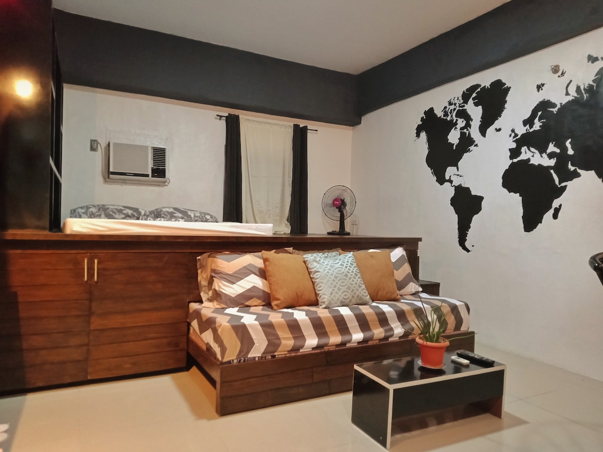 Fáilte go dtí The Cozy Corner — stiúideo úrnua fairsing nach bhfuil ach 15-25 nóiméad ó Aerfort Mactan-Cebu. Foirfe do thurasóirí nó do mhuintir na háite atá ag lorg áit fanachta chiúin chompordach. Tá leaba bhanríona, teilifíseán cliste, Wi - Fi tapa, balcóin, cistinéad agus seomra folctha príobháideach san aonad. Lonnaithe in Plumera Mactan le slándáil 24/7, páirceáil d'aíonna, agus siopaí agus bialanna áise in aice láimhe. Glan, teolaí agus foirfe le haghaidh tréimhsí fanachta gearra.