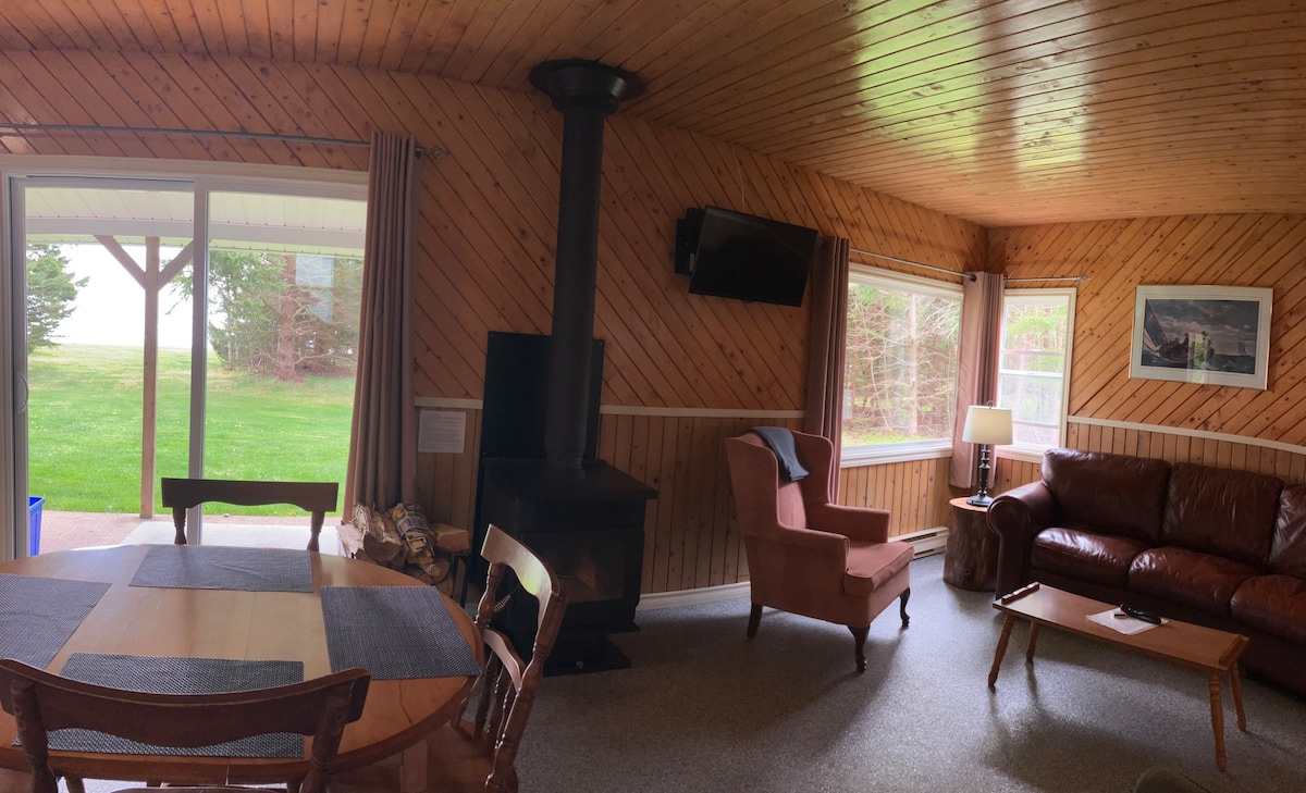 Tóg go héasca é ag an saoire ghearr uathúil shuaimhneach seo. Féach ar Ghleann Annapolis sa seomra gréine 40ft. nó bain sult as na taoidí athraitheacha Abhantrach Minas. Lig do scíth sa tobán scaird 2 dhuine tar éis siúlóid chuig Cape Split nó in aice le tránna Snuggle os comhair an teallaigh le haghaidh tráthnóna rómánsúil. Tá bialann shéasúrach agus Look Off Park suite ach siúlóid ghearr ar shiúl nó más fearr leat cócaireacht tá cúpla fearas beag cócaireachta againn. Micreathonnán, oigheann Hotplate, beárbaiciú gach rud atá uait.