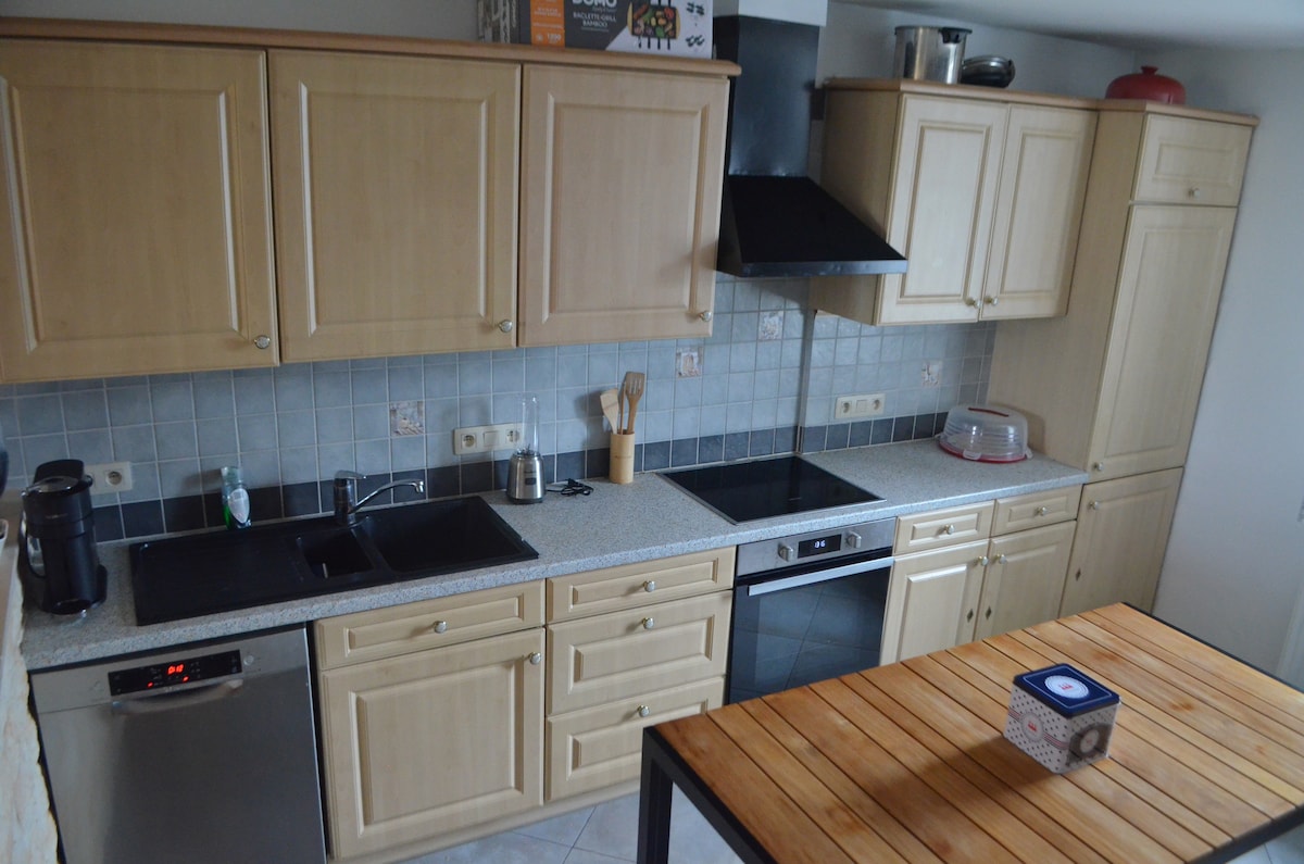 Fáilte chuig "La Parenthèse" i mBastogne! Tá 3 sheomra leapa sa teachín ina bhfuil seomraí folctha en - suite, jacuzzi, sabhna... Foirfe do 7 -8 nduine, codlaíonn sé suas le 9 Ar éileamh: - Poll dóiteáin/ sorn - adhmad - Tobán te saor in aisce Bealtaine - Meán Fómhair (ag íoc ó Dheireadh Fómhair go hAibreán) Áirithintí oíche amháin: is féidir i rith na seachtaine! Tá fáilte roimh mhadraí ach é a iarraidh