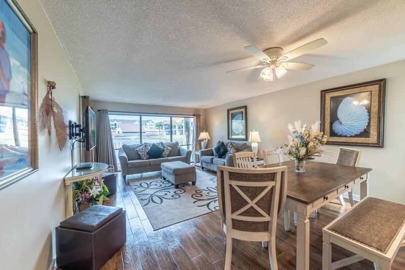 Is siúlóid 1 nóiméad é an Villa Álainn seo chuig linn snámha, siúlóid 3 nóiméad chuig trá phríobháideach na n - ionad saoire agus linn snámha murlaigh is mó Panhandles trí dhroichead an tsiúlbhealaigh ionaid saoire. Tá bialanna agus siopaí éagsúla timpeall an ionaid saoire, go leor go díreach trasna na sráide ó bhealach isteach an ionaid saoire. Breathnaíonn do phaitió amach thar an ngalfchúrsa taibhseach le Lochán agus Fuarán álainn, áit ar féidir leat taitneamh a bhaint as sunsets iontacha, éirí gréine nó féachaint ar chluiche gailf iontach. Is é 25 an Riachtanas Aoise ag an ionad saoire seo