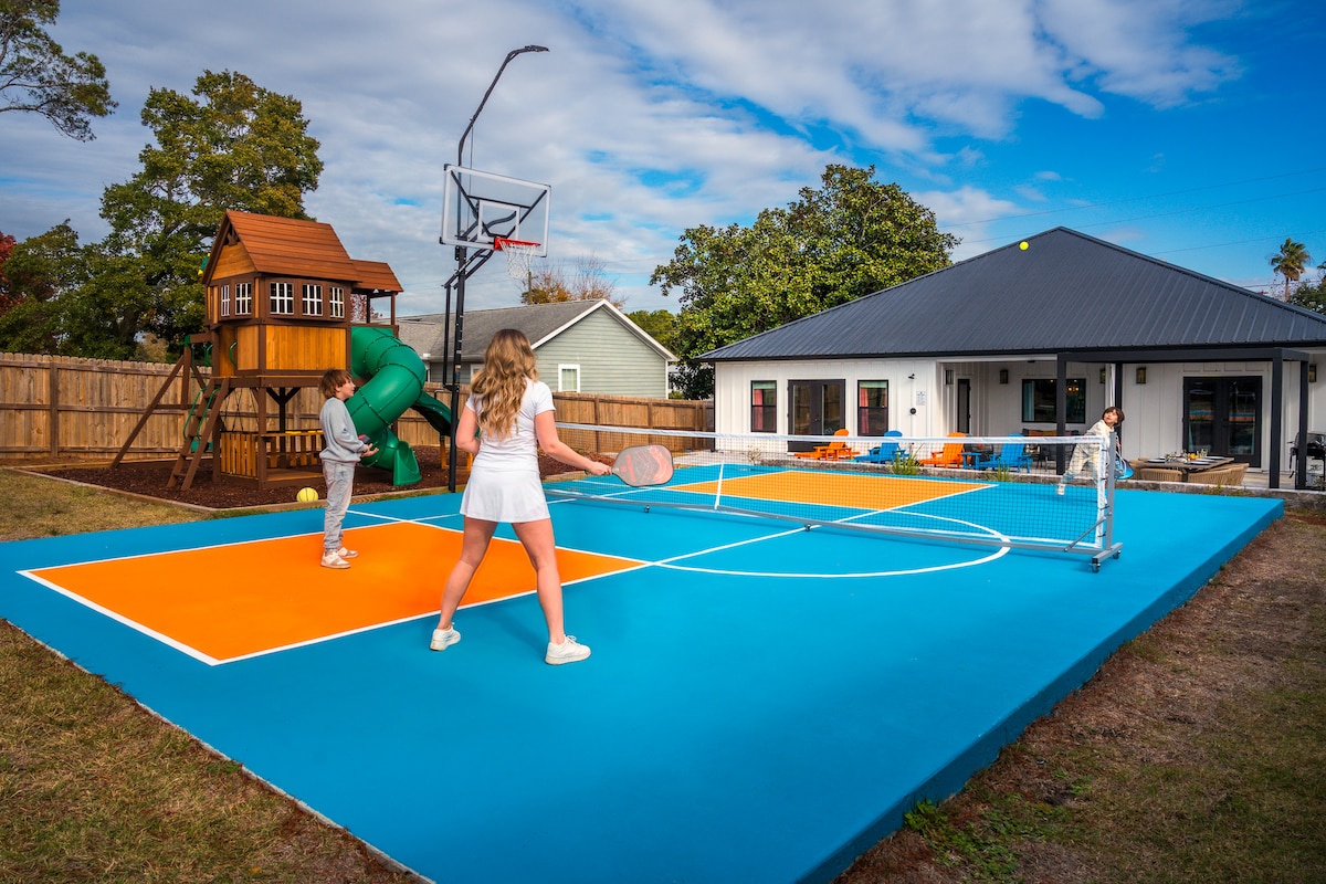 Taitneoidh an bungaló aoibhinn seo go mór leat mar gheall ar a linn snámha théite, décor sofaisticiúil, póirse scagtha, cithfholcadán lasmuigh, siúlóid ghearr chuig an trá, agus idirlíon ardluais! Taobh istigh, gheobhaidh tú seomra teaghlaigh fairsing iontach, 3 sheomra leapa, agus socruithe codlata do 10 nduine. Bain sult as do scíth a ligean ar an bpóirse scagtha! Tá téamh linn snámha ar fáil ar $ 40/lá. Sonraí thíos. Tá ár gcart gailf 6 shuíochán ar fáil ar cíos ar $125 in aghaidh an lae Táimid cairdiúil do mhadraí ach tá táille peataí $170 le híoc. Trí mhadra ar a mhéad.