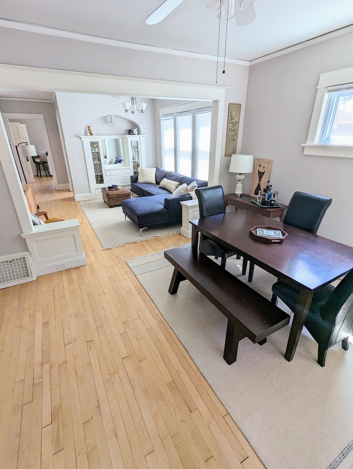 Tá ár n - árasán 3 sheomra leapa i dteach álainn athchóirithe, uathúil, síochánta, agus in aice le gach rud atá le tairiscint ag Bay View. Bain sult as radhairc ar Loch Michigan ón bpóirse tosaigh agus ón seomra bia. Is é Secret Vintage Lounge thíos staighre le seandachtaí ó gach cearn den domhan an spás uathúil foirfe - níl aon rud eile mar seo in Milwaukee! Tá an chéad árasán urláir seo gar do Pháirc an Chladaigh Theas ar Loch Michigan - Níl ort ach nóiméad siúil ó Thrá an Chladaigh Theas agus cosán cois locha.