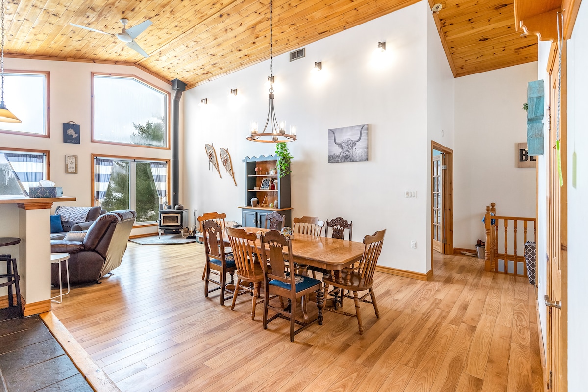 Is é an teachín 6 sheomra leapa nua - athchóirithe seo an áit fhoirfe chun do scíth a ligean le grúpa mór ag loch ciúin. Cuimsíonn an réadmhaoin trá ghainmheach, seoladh báid agus duga. Úsáid a bhaint as canú agus bréagáin trá. Tá an teachín glan agus cairdiúil don leanbh; lena n - áirítear 2 dhráma pacáiste n agus 2 chathaoir arda. Lonnaithe ar Loch Beag Fada; cuid d'uiscí Abhainn Pickerel, le breis agus 40 míle de bhádóireacht! Díreach suiteáilte Starlink, tá idirlíon iontach againn anois!