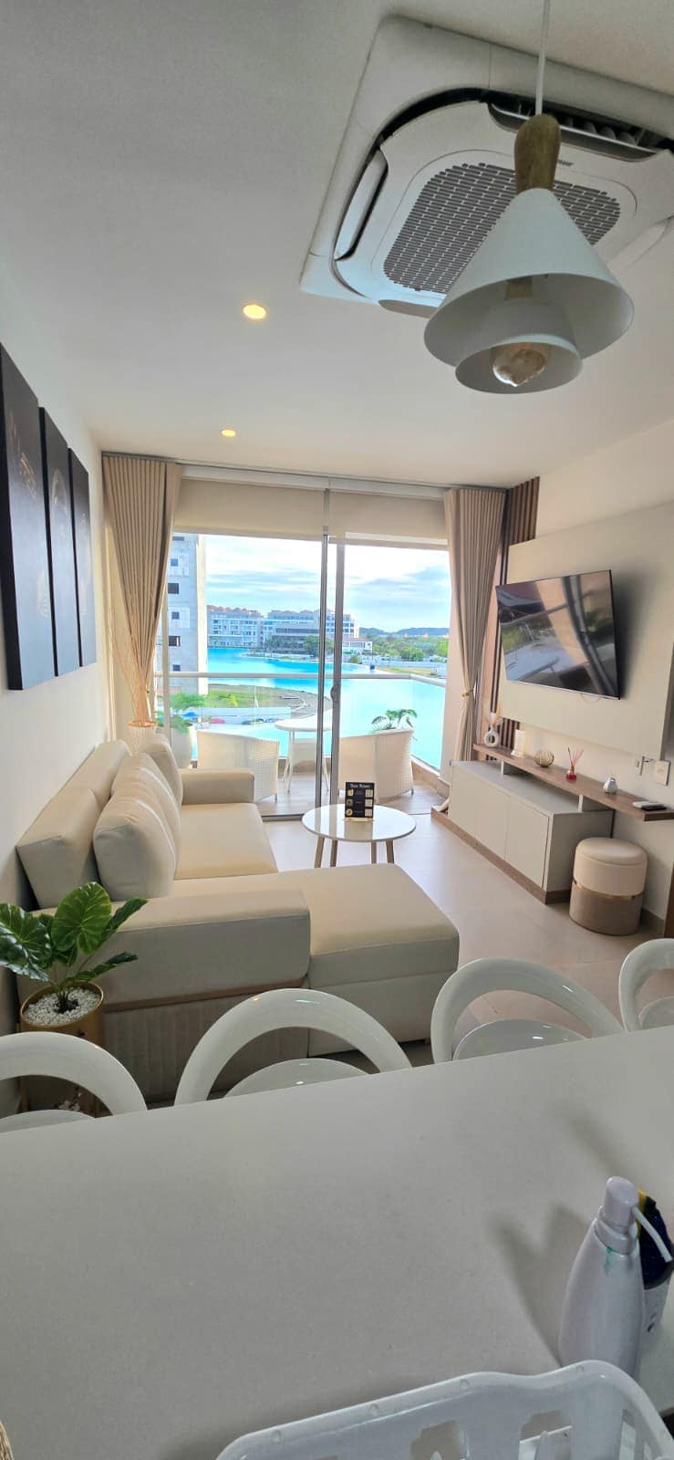 Experience your dream vacation at Baia Kristal Privé in vibrant Zona Norte, Cartagena. This 3-bedroom, 3-bathroom luxury condo offers comfort, style, and stunning views for up to 8 guests. With a gourmet kitchen, open-concept living area, and luxurious amenities like Smart TVs and high-speed Wifi, this retreat is perfect for families, groups, or special occasions. Enjoy the private beach club, gym, playground, sauna, and jacuzzi, while being just minutes from beaches, attractions, and nightlife.