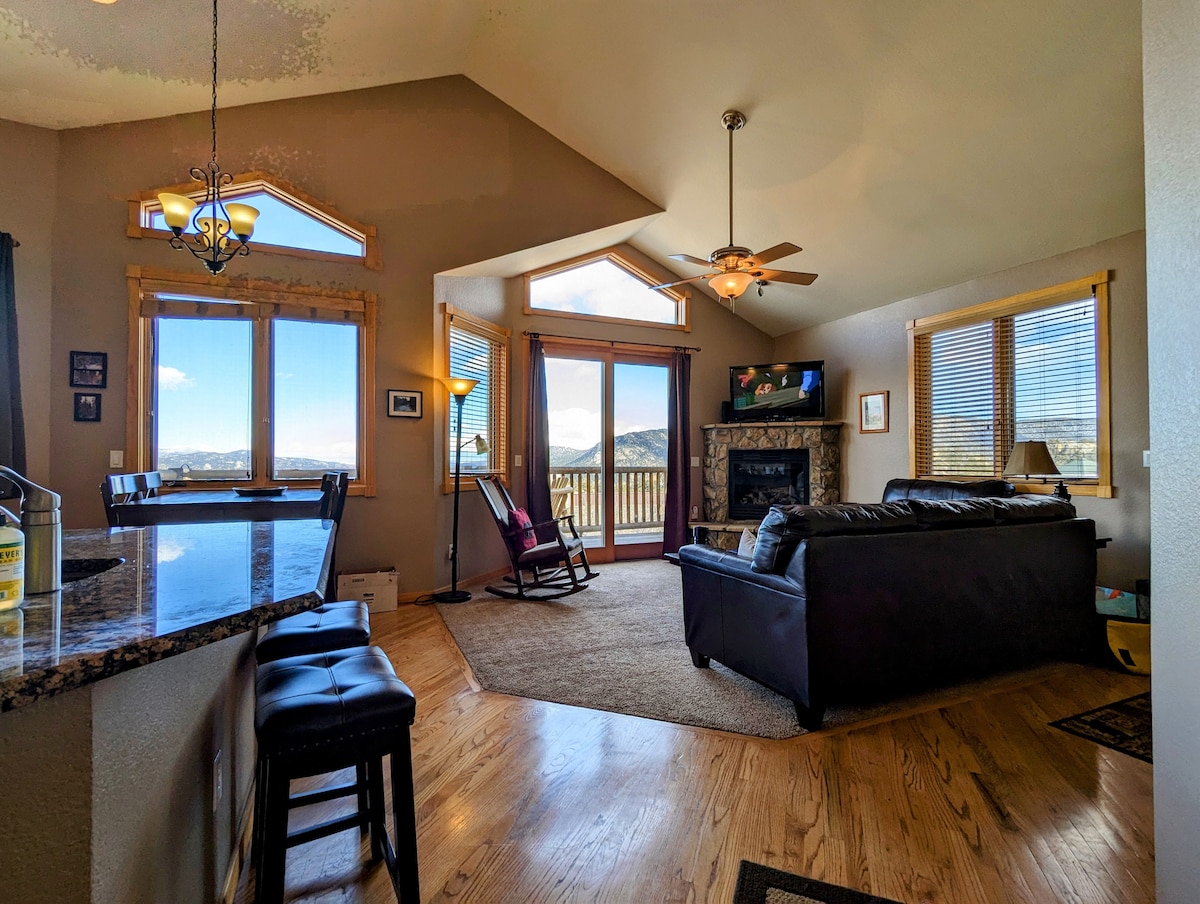 [Ceadúnas Estes Park 6168] Fáilte chuig ár n - árasán faoi úinéireacht teaghlaigh i bPáirc Estes! Tá lúcháir orainn é a roinnt leat. Neadaithe in áit shuaimhneach, beidh sé ar do shaoire fhoirfe le haghaidh scíthe agus scíthe. Scaoil isteach sa tobán te agus bí ar do shuaimhneas. Is bunchampa foirfe é seo do d'eachtraí samhraidh nó do thearmann teolaí geimhridh; saoire ghearr ar feadh na bliana. Radhairc sléibhe, radhairc locha, nóiméad ó Downtown Estes, agus Páirc Náisiúnta Rocky Mountain - le rochtain ar linn snámha samhraidh.