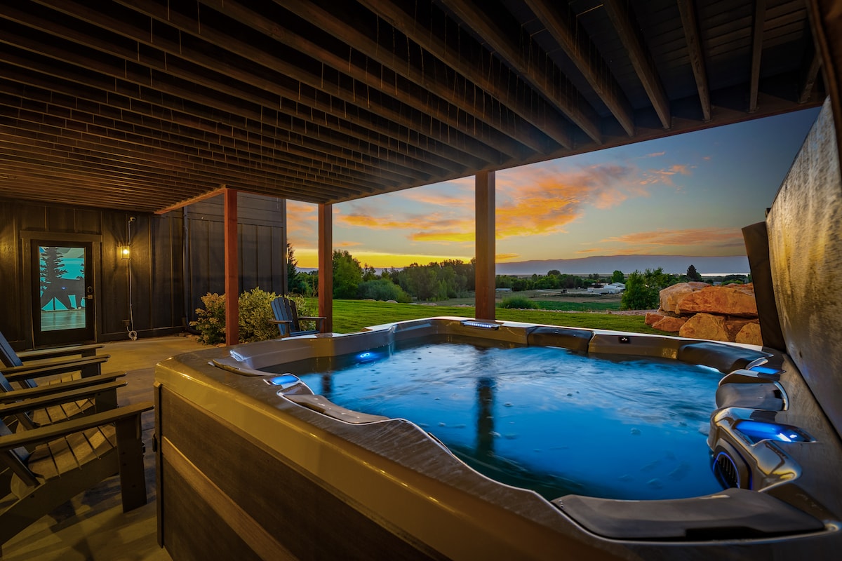 Elevate your Bear Lake stay at Black Timber, a private grove retreat atop The Reserve with wide lake and mountain views. This spacious home sleeps up to 36 and was built for groups with a gourmet kitchen, theater room, and hot tub. Enjoy private beach access, nearby trails, and four season fun. Ideal for families, reunions, and corporate retreats. Kid friendly game spaces, fast wifi, and cozy finishes keep everyone comfortable.