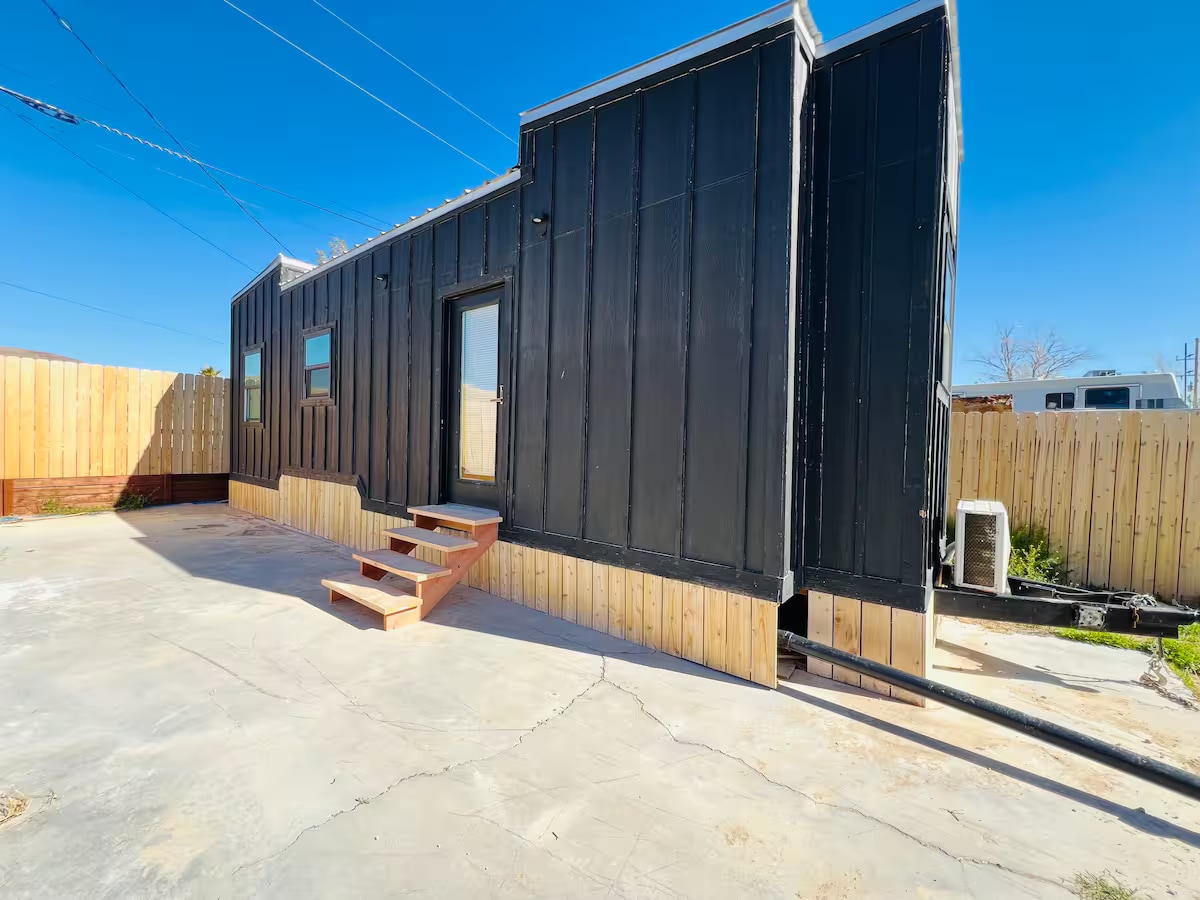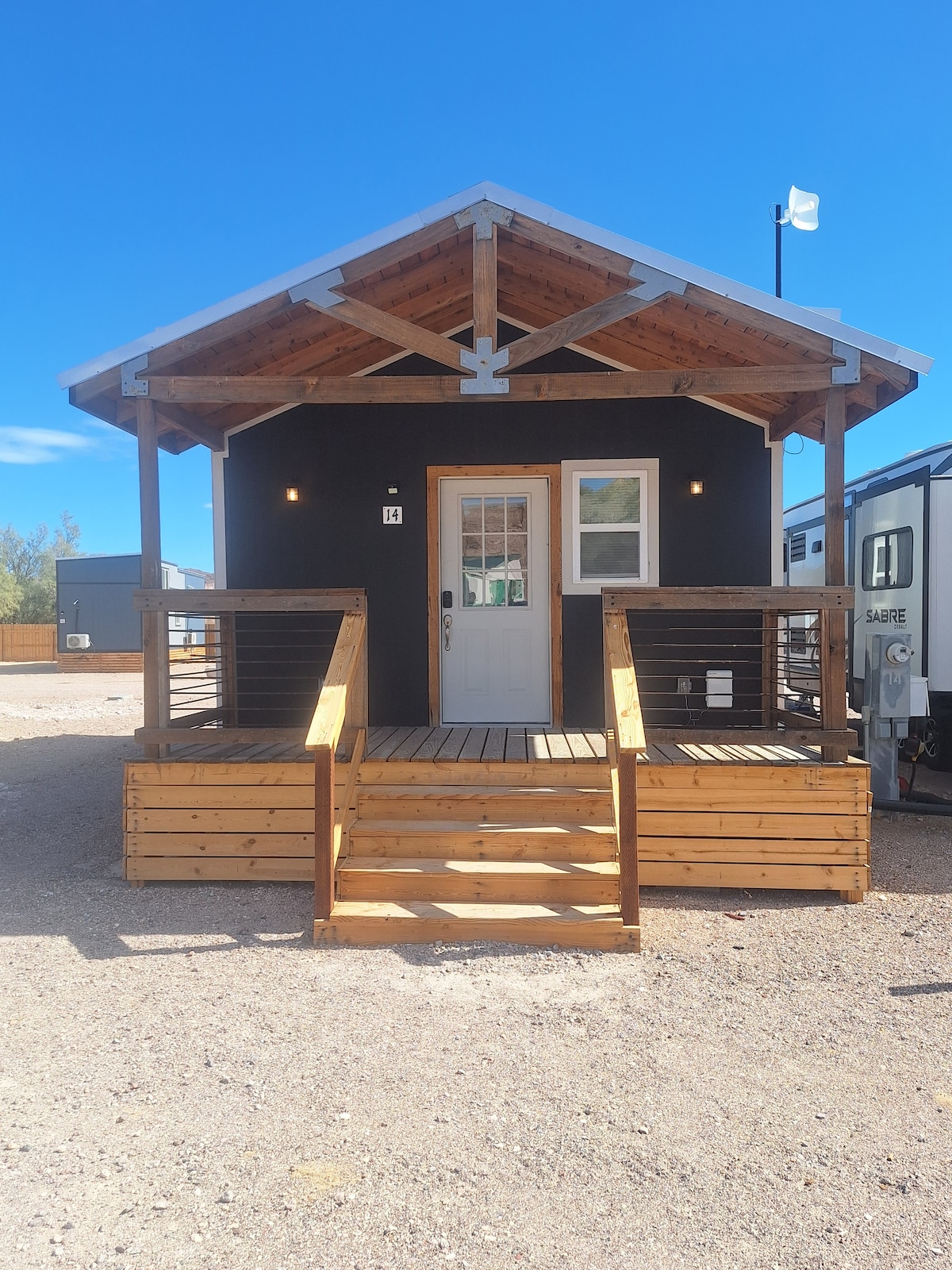 LOW PRICE FOR CONSTRUCTION GOING ON IN AREA!! We have great hot water. Studio Unit with detached bathroom. Welcome to Sunrise Camp Cabins! We are a new Tiny House Campground in Beautiful Pahrump Nevada. The cabins are located close to town and are very cozy! We offer great Wifi, AC, Heat and free easy parking. Nestled in a quiet town of Pahrump, this charming cabin offers a peaceful retreat from the hustle of everyday life. With the gentle sounds of nature, it’s the perfect place to unwind.