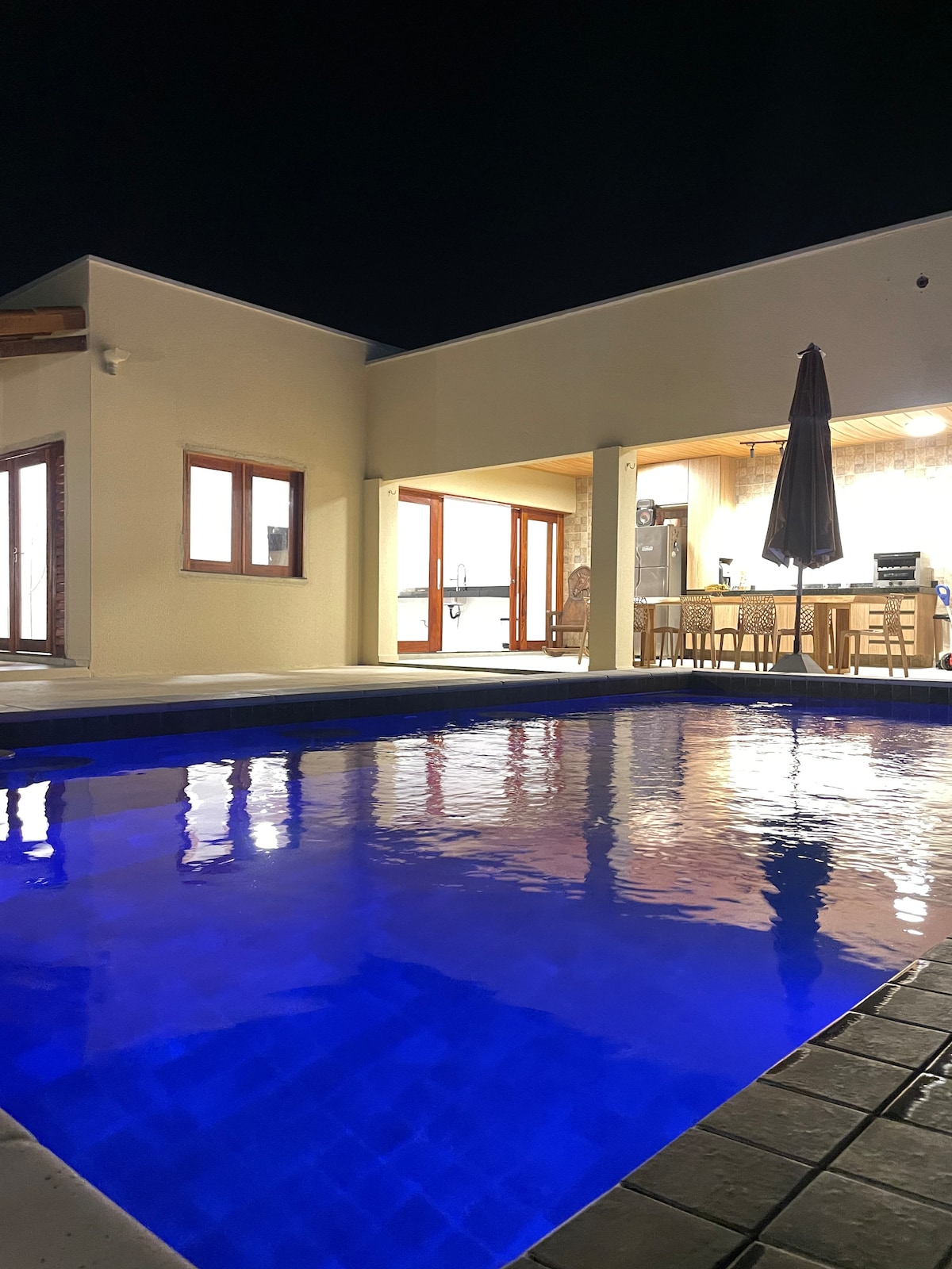 Teach i bpobal geataithe le concierge agus faireachas 24 uair sa lá, foirfe do theaghlaigh atá ag lorg compord, sábháilteacht agus fóillíocht. Tá spás ann do suas le 14 dhuine. Suíomh faoi phribhléid os comhair locha nádúrtha. Tá 3 svuít aerchóirithe ann le leapacha banríona, seomraí móra comhtháite, balcóin le haghaidh áil a luascadh agus spás iomlán gourmet le gríoscán beárbaiciú. Limistéar fóillíochta eisiach ina bhfuil linn snámha éigríochta ina bhfuil guairneán, deic ar snámh agus teallach lasmuigh. In aice le Trá Barra Nova, Cascavel (15 nóiméad)