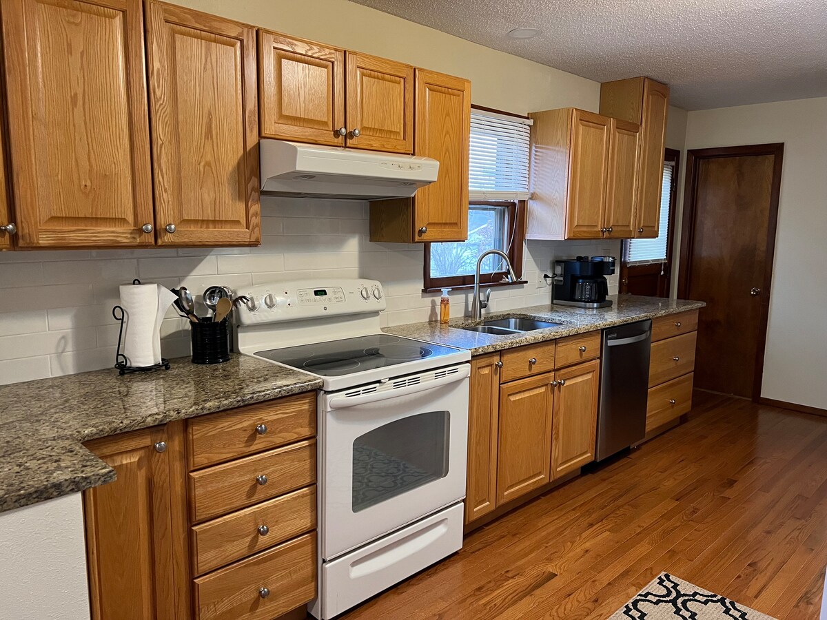 Ní bhfaighidh tú aon rud cosúil leis an lochta álainn seo laistigh de 100 míle! Tá sé suite i gceartlár athfhorbartha lárbhaile stairiúil Maryville, díreach míle ó champas NWMSU. Tá 1600 troigh chearnach ina gcónaí ann ina bhfuil trí sheomra leapa, dhá sheomra folctha iomlána cosúil le spá, dhá spás maireachtála iontacha lasmuigh, seomra suí oscailte/coincheap na cistine, agus na saoráidí go léir. Siúil go dtí an dinnéar, déan roinnt siopadóireachta, caith roinnt aiseanna, buail suas an ghrúdlann - díreach taobh amuigh de do dhoras!