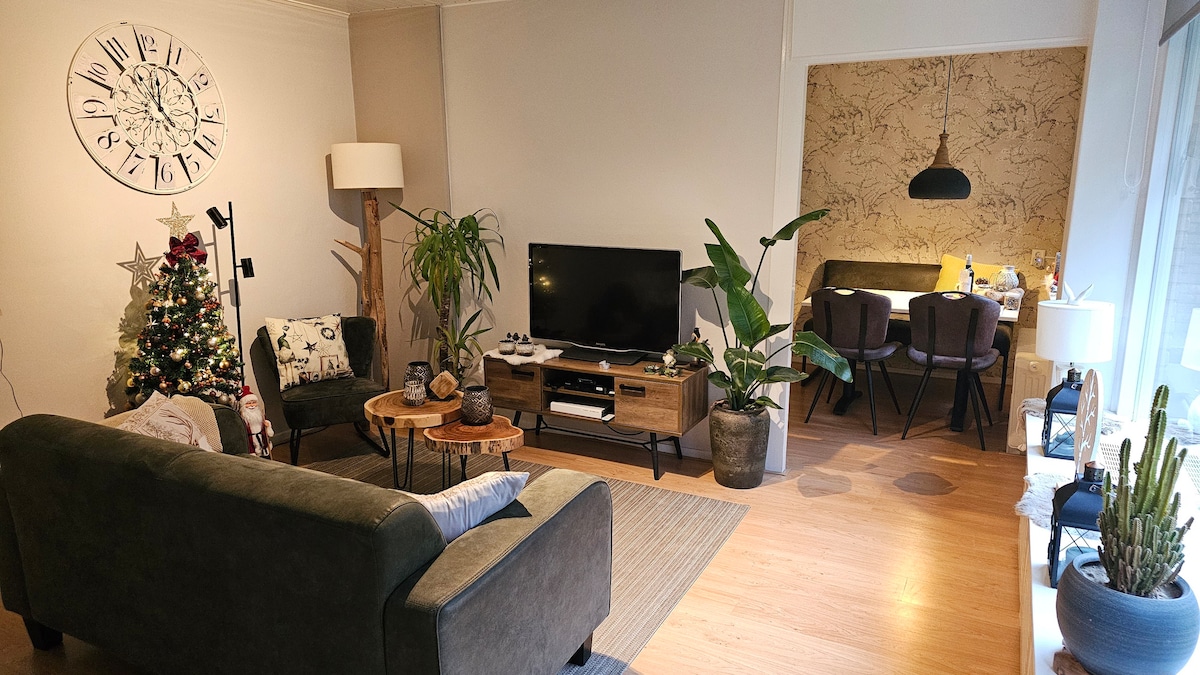 Teachín cloiche scoite ina bhfuil gairdín príobháideach agus radhairc ar thírdhreach álainn Achterhoek. Mar gheall ar an iliomad fuinneog, tá an seomra suí an - gheal agus fairsing. Tá sorn dóite adhmaid ann freisin a ligeann duit téamh suas ag an sorn tráthnóna fuar agus ar ndóigh sa sabhna. Siúlann ár gcapaill sa mhóinéar os comhair an ghairdín, ritheann ár sicíní scaoilte tríd an ngairdín freisin.