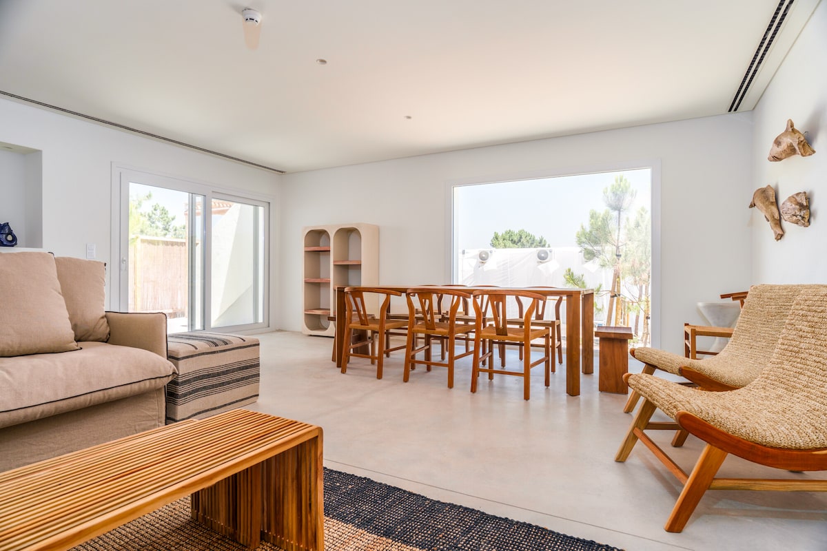 Casa Atlântico, localizada a apenas 500 metros da praia do Carvalhal (Comporta), corresponde a um apartamento 100m2, com piscina com água quente, sobre o campo de arroz da Comporta. Interior em open space, 2 quartos interiores, 1 cama de casal e 1 beliche, e 1 WC. No exterior, pátio e jardim e piscina. Inclui internet, TV, coluna som e bicicletas.