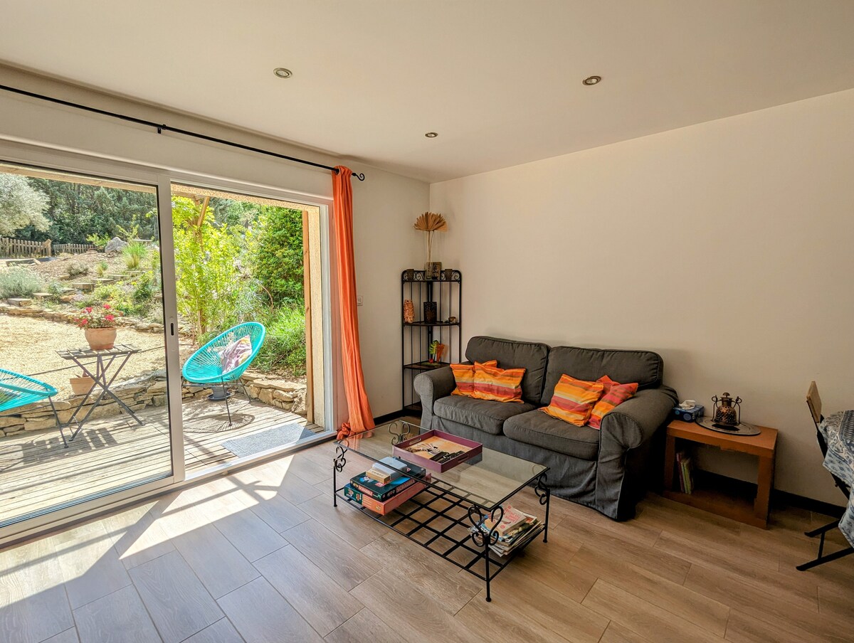 Éalaigh go dtí an Cósta Gorm breathtaking agus faigh blaiseadh de Provence i stiúideo atá deartha go tuisceanach ag úinéirí ailtire. Dúisigh suas go dtí radhairc iontacha ar an gcnoc agus ar an bhfarraige ó d'ardán príobháideach agus bain sult as na sónna nua - aimseartha ar fad. Siúil go dtí an trá ghainmheach agus déan iniúchadh ar na coves le cadhc farraige dea - mhéine. Tá sé suite 10 nóiméad ón stáisiún traenach áitiúil agus 25 nóiméad ó aerfort Marseille le páirceáil saor in aisce. Tá eachtra dodhearmadta ag fanacht ar Chósta Gorm Provence!