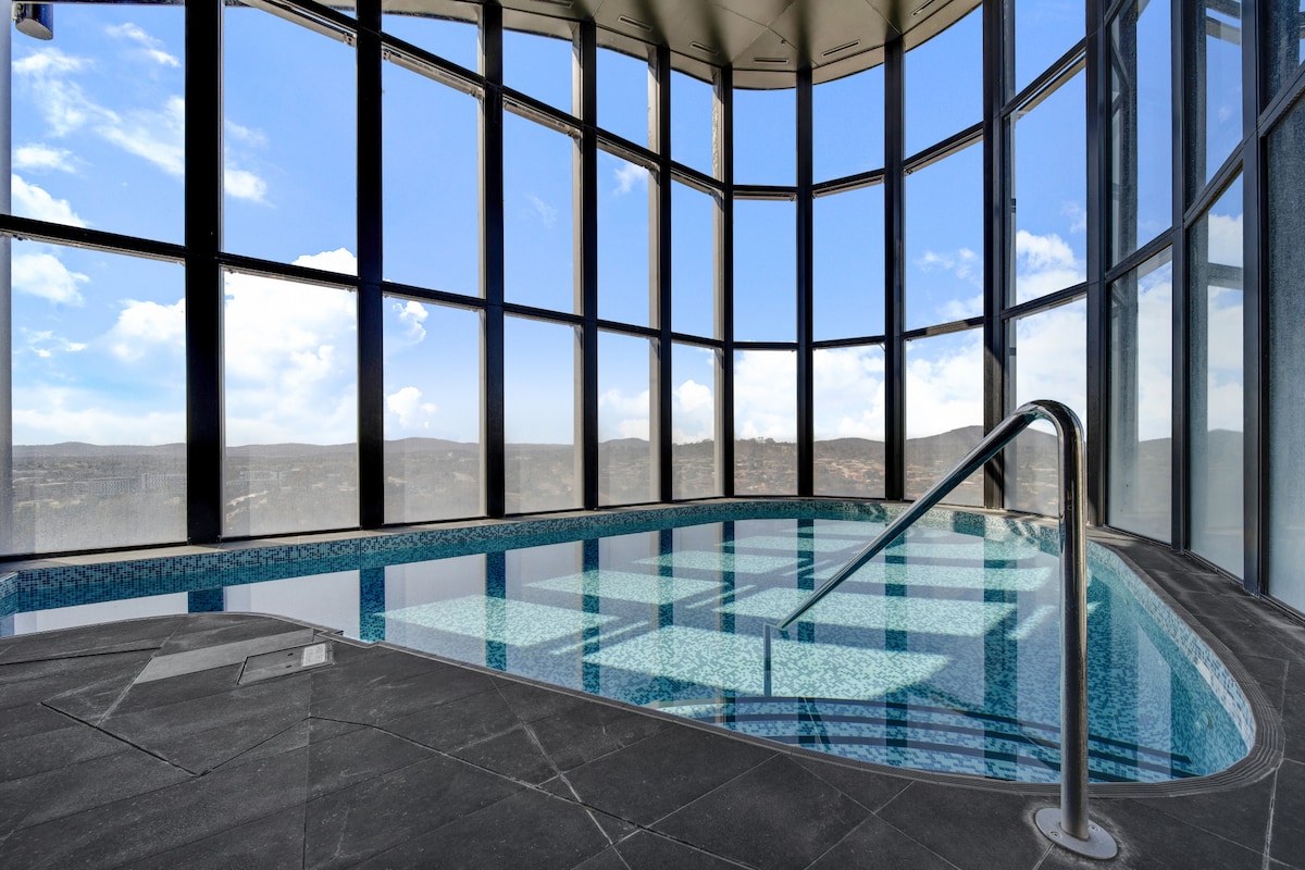 Suite ar urlár ard den fhoirgneamh is airde in Canberra, tá radhairc iontacha cois locha, dhá sheomra leapa phríobháideacha, agus páirceáil do bheirt san árasán seo. Tá radhairc lánléargais ar an loch sa phríomhsheomra leapa, agus tá rochtain ar bhalcóin ag an dara ceann. Ón mbalcóin, glac isteach vistas sléibhe, sunsets iontacha, agus radharc linn snámha gairdín suaimhneach. Gairdín Spéir an 23ú hurlár le beárbaiciú. 5ú hurlár: Linn snámha, Sabhna & GIOMNÁISIAM. Céimeanna ó bhia cois locha & Páirc. Bus díreach chuig City, ANU, GIO & ais. Rochtain éasca ar UC & Westfield.