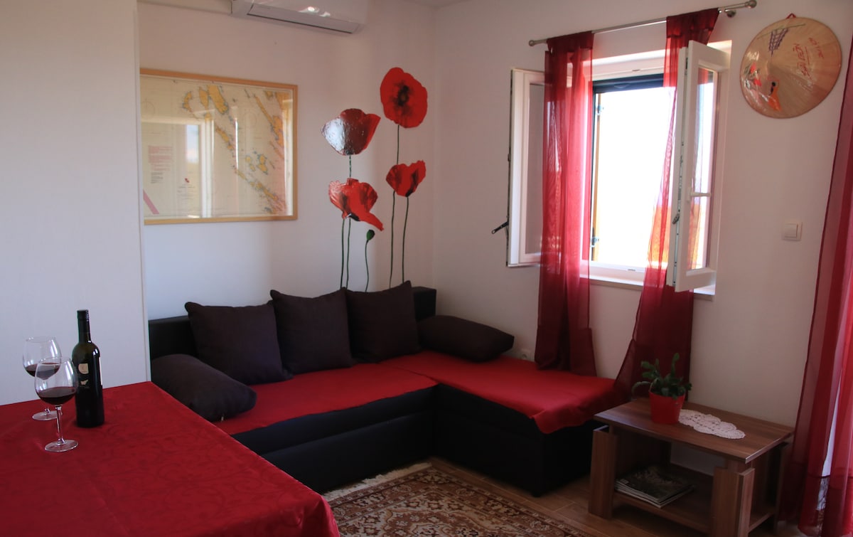 Árasán álainn nua gar don fharraige agus don trá le radharc farraige. Tá gairdín mór ann le radharc ar an bhfarraige inar féidir leat do scíth a ligean. Tá ár n - árasán suite i mbaile stairiúil Osor.
