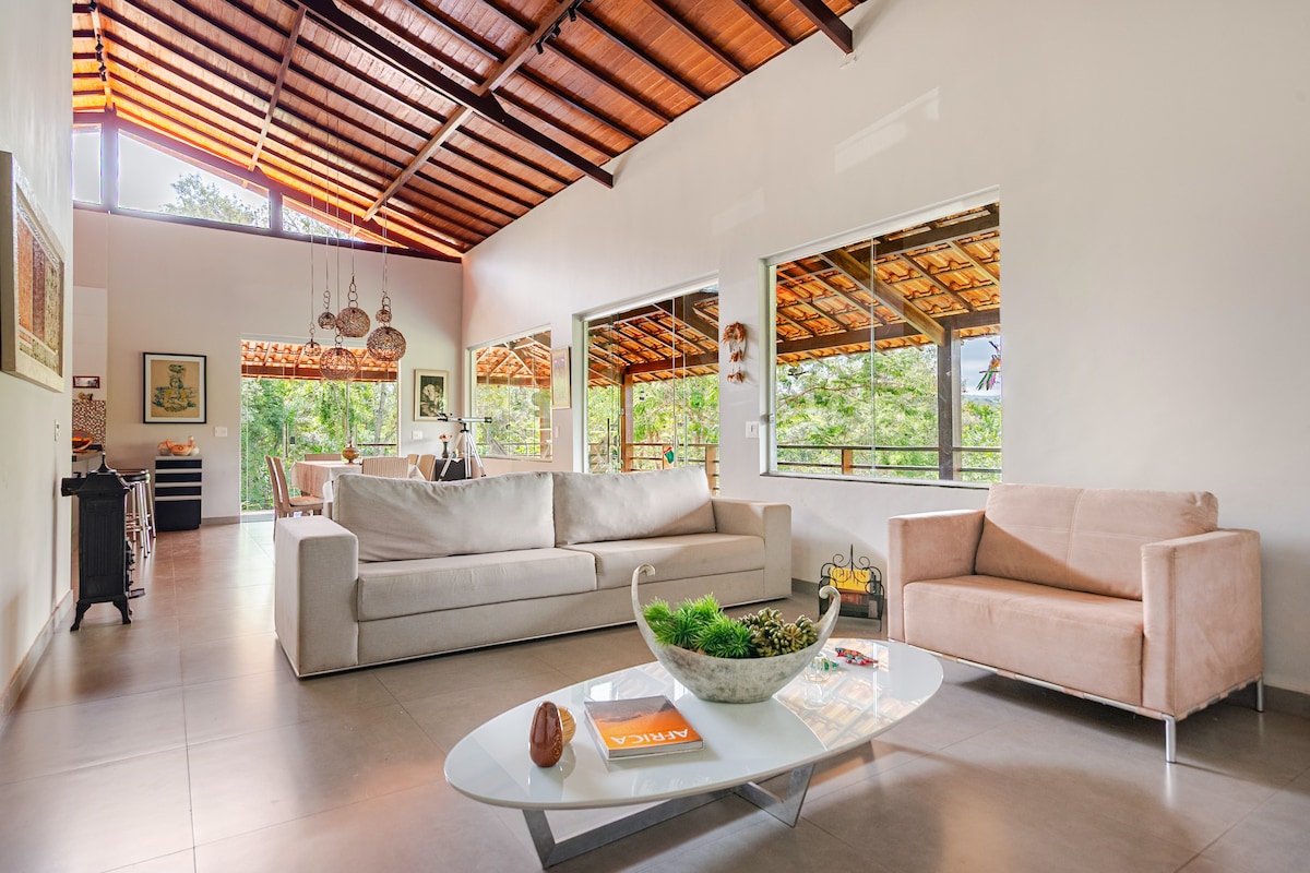 Viva uma experiência única ao se hospedar na casa ateliê do artista Catin Nardi, em Macacos. Imerso na natureza de São Sebastião das Águas Claras, o chalé oferece aconchego e privacidade além de fácil acesso a trilhas, cachoeiras e restaurantes locais. Cada detalhe da casa, decorada com a criatividade do artista, proporciona uma atmosfera única. Desde o lindo quintal, com vários locais agradáveis à área coberta, você se sentirá envolto em uma experiência artística e acolhedora.