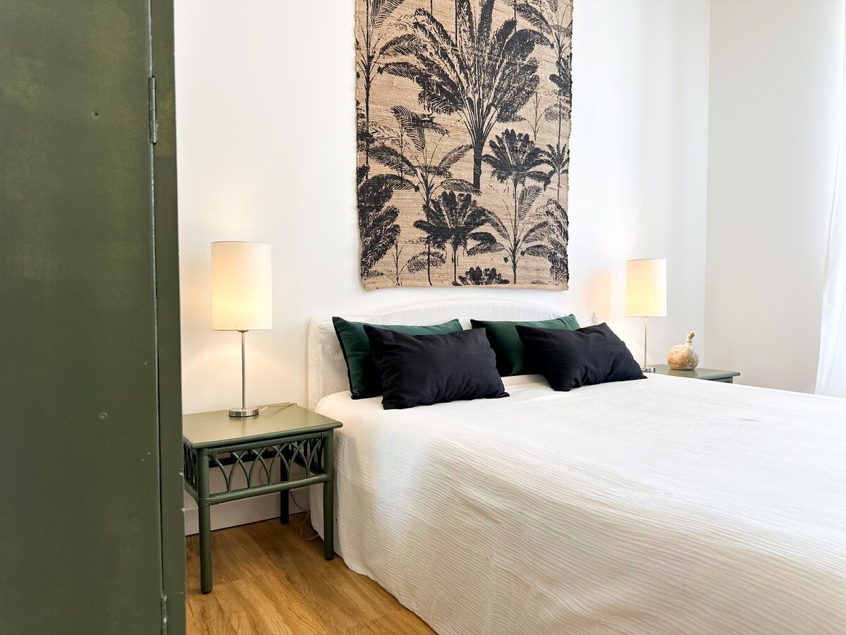 2 VELOS (1 VTC femme et 1 VTC Homme ) - jusqu’au 08/11/2025 et à partir du 06/04/2026 T1 bis de 24 m2 3 étoiles Plages et commerces à pied (250 m) 1 place de parking réservée Cuisine entièrement équipée: plaque à induction, four/micro-ondes, lave-vaisselle, Nespresso… Espace nuit indépendant : lit gigogne 2 matelas de 80*200 (de même hauteur formant un grand lit) Pièce de vie: canapé convertible 2 places SMART TV Lave-linge Jardin clos 36 m2 exposé Sud