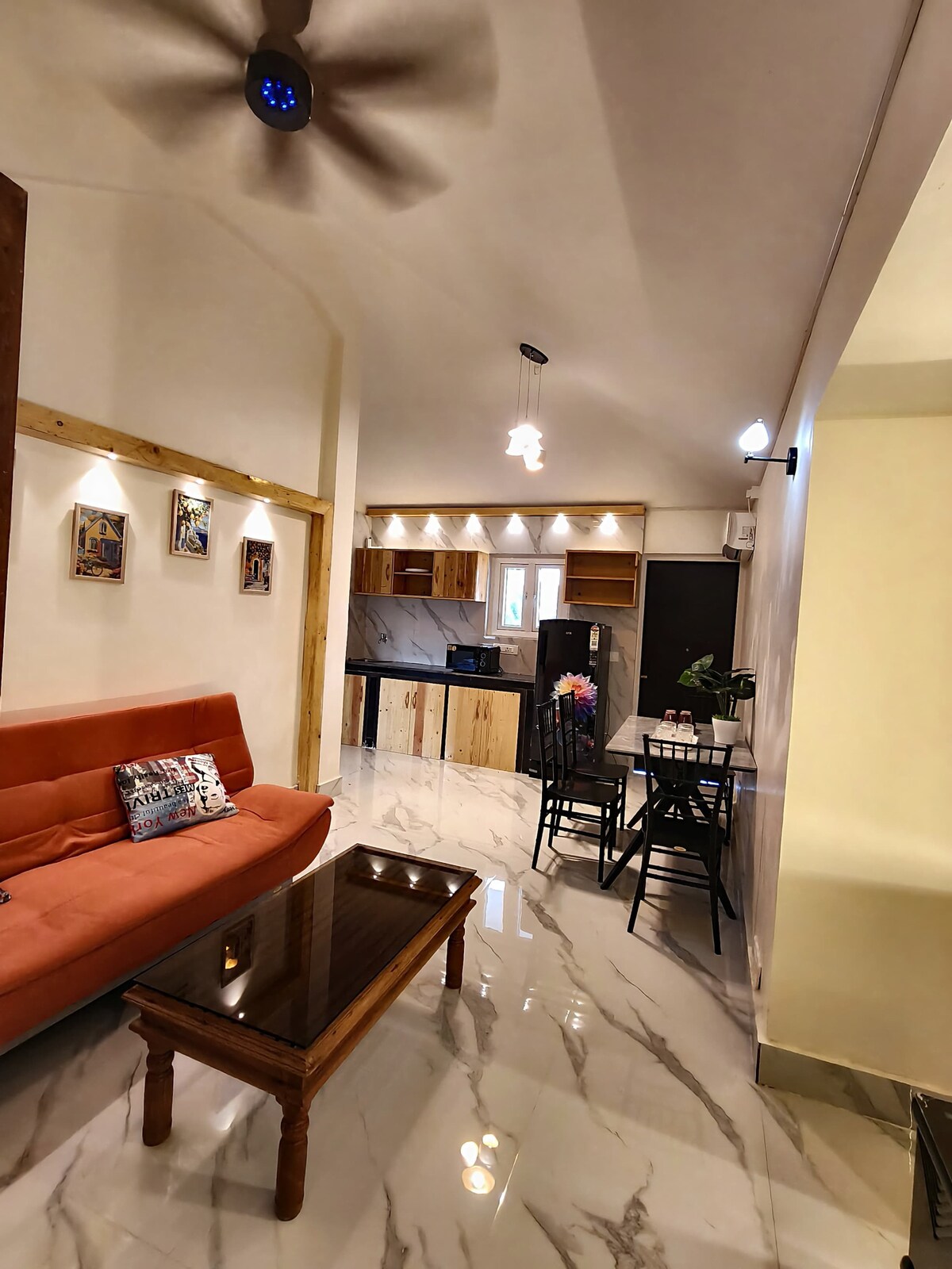 Fáilte go dtí ár stiúideo den scoth in Costa Montage, Benaulim atá timpeallaithe ag páirceanna ríse agus rochtain ar thrá álainn Benaulim. Deartha go cúramach agus feistithe go hiomlán, tá an spás galánta seo foirfe do thaistealaithe aonair, do lánúineacha nó d'aíonna gnó. Bain sult as cistin nua-aimseartha, saoráidí den scoth agus atmaisféar suaimhneach. Níl sé ach cúpla nóiméad ar shiúl ó thrá Benaulim, agus tá bialanna, caiféanna, tacsaithe agus rothair ar cíos laistigh d'achar siúil.