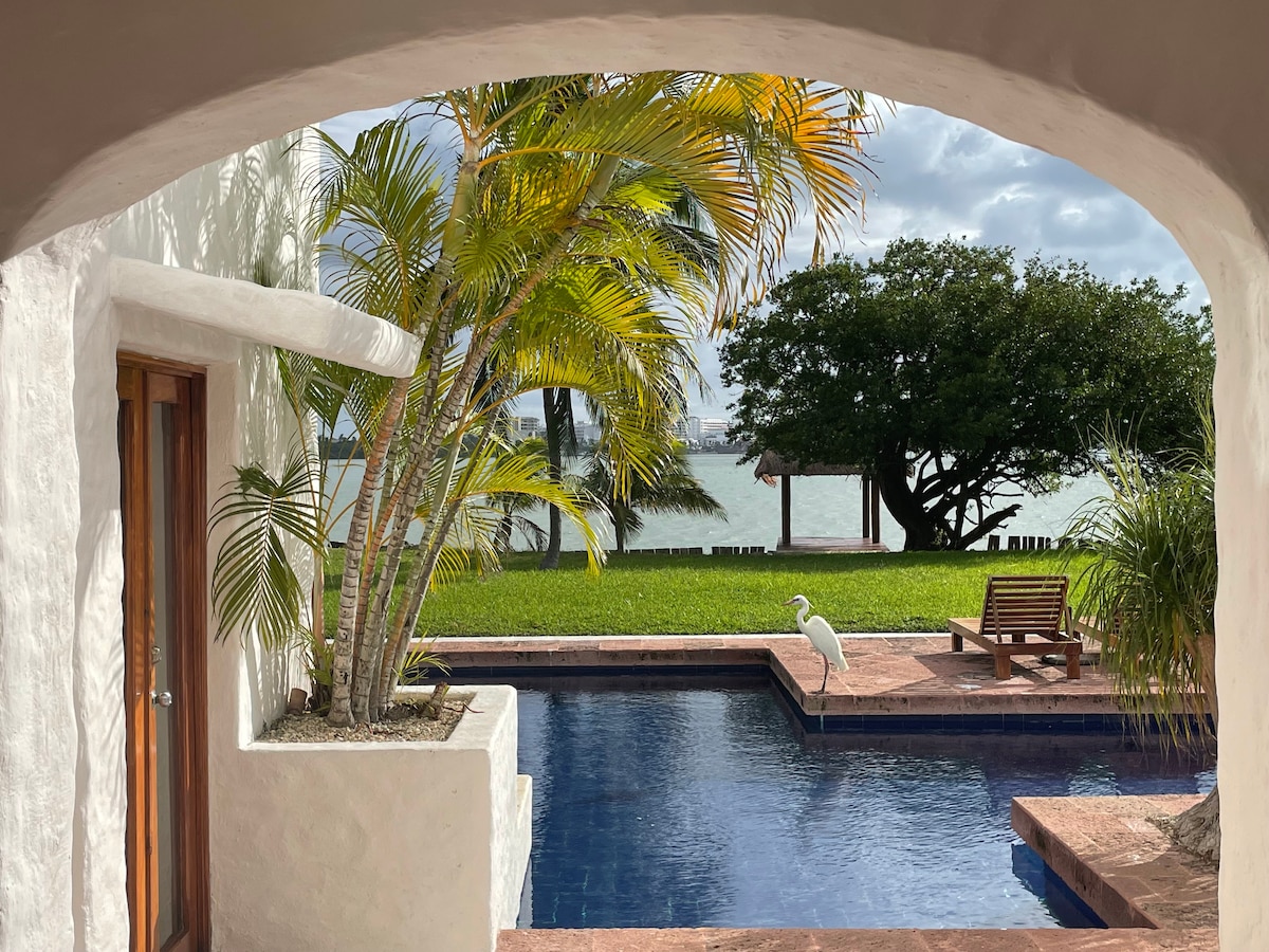 🌴 Fáilte go dtí ár villa iontach i gcroílár Chrios Óstán Cancún! Foirfe do theaghlaigh nó do ghrúpaí, cuireann sé compord, só agus príobháideacht ar fáil. Dúisigh le radhairc uathúla de Laguna Nichupté, lig do scíth ar an ardán príobháideach nó sa linn snámha. Cúpla céim ar shiúl, gheobhaidh tú an trá, an bád farantóireachta go Isla Mujeres, siopaí, bialanna, agus siamsaíocht bhríomhar oíche. ✨ Déan eispéireas dodhearmadta de d'fhanacht i Muir Chairib Mheicsiceo!