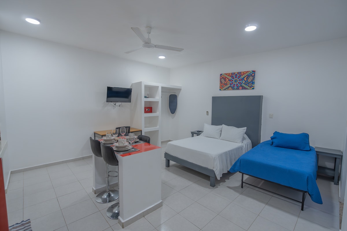 Árasán duitse amháin, bain sult as an gcompord i gceantar ina bhfuil suíomh an - mhaith, ciúin agus sábháilte. Cúpla nóiméad ó na cearnóga agus na bialanna tráchtála is fearr, 8 nóiméad ón trucail lárnach, 20 nóiméad go haerfort Cancun agus díreach 10 nóiméad go dtí bealach isteach chrios an óstáin. Lánfheistithe agus feistithe, oiriúnach do do thuras taitneamhach chun do thuras a dhéanamh taitneamhach.