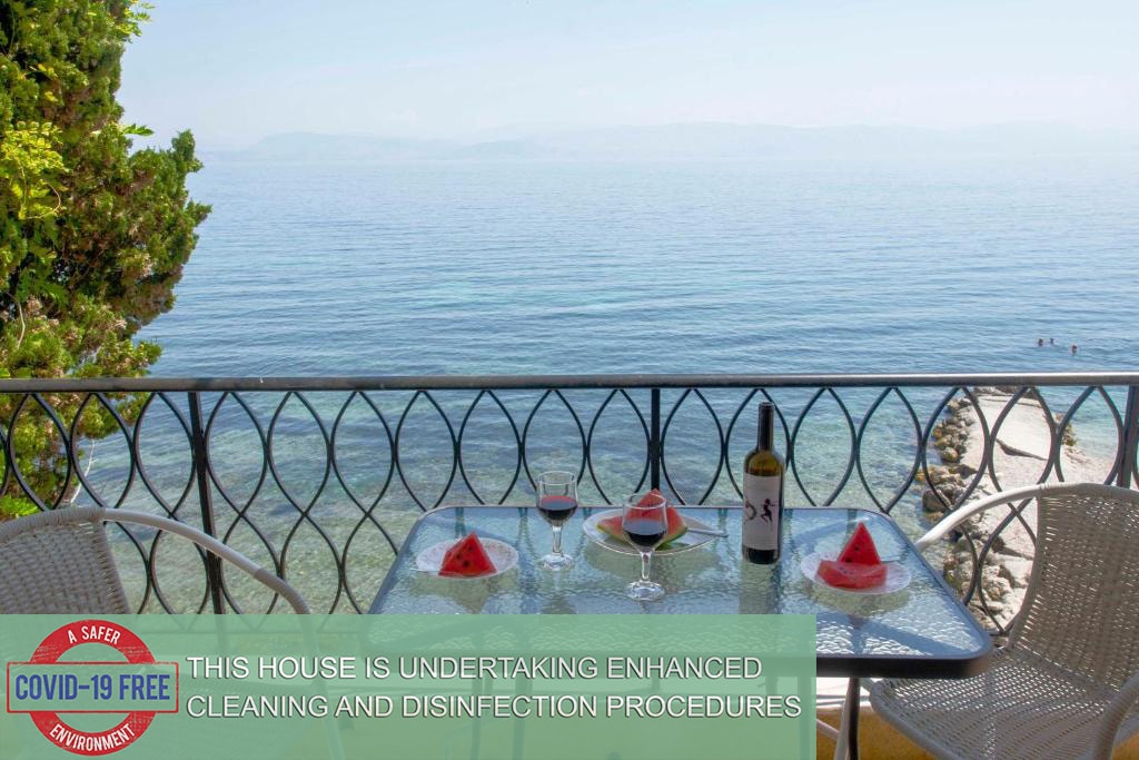 Tá an t - árasán suite i gcomharsanacht chiúin i sráidbhaile traidisiúnta cois farraige Benitses ,12km ó dheas ó Bhaile Corfu - 5km ó Pálás Achilleion; ca60m ón trá;cuireann sé rochtain láithreach ar fáil ar éagsúlacht bialanna,siopaí agus margaidh áitiúla.N stad bus a théann go Baile Corfu, níl ach 50m ar shiúl. Cuireann sé páirceáil phríobháideach ar fáil; atá feistithe go hiomlán le teilifís, áiseanna cócaireachta, gréithe cócaireachta, cuisneoir, meaisín níocháin, A/C, folúsghlantóir, triomadóir gruaige, srl. Tá balcóin mhór, teallach ann.