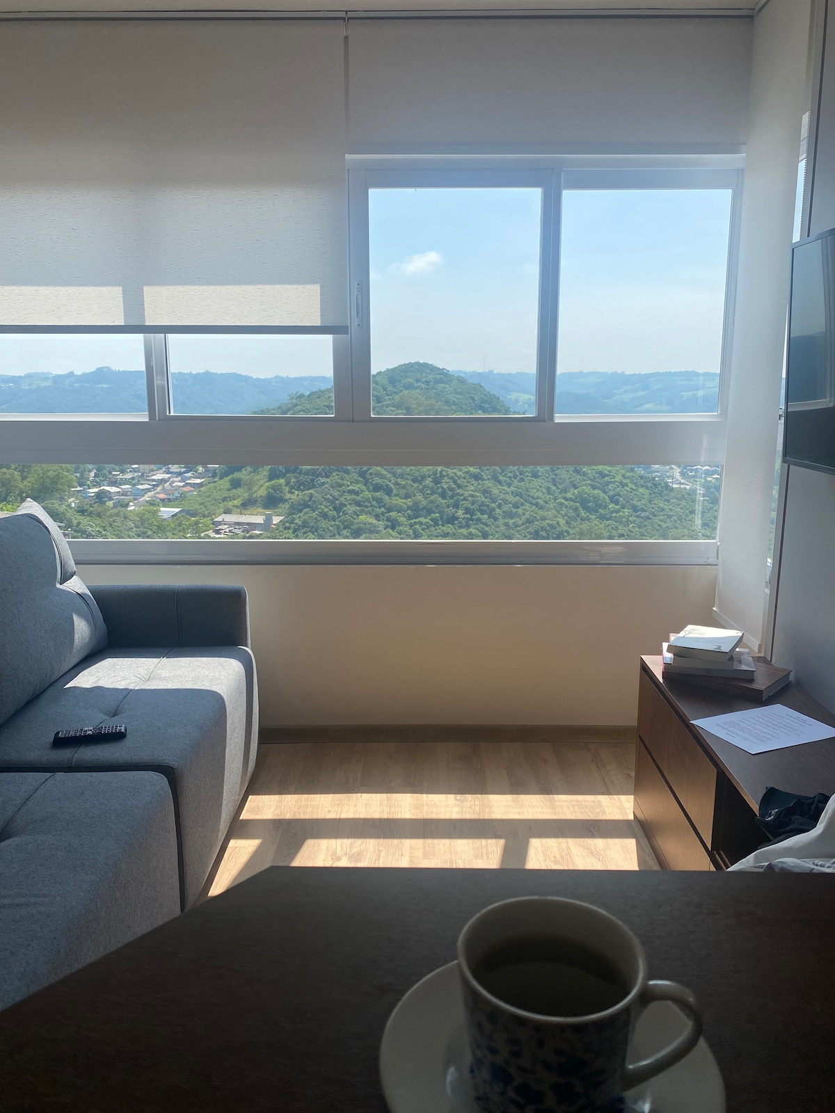 Lig do scíth sa spás ciúin galánta seo. In Serra Gaúcha, in Bento Gonçalves - RS, atá suite go maith i gcomharsanacht Humaitá, in aice le lár na cathrach, árasán nua, tá uisce te i ngach sconna, aerchóiriú te agus fuar, Smart TV 43" Tá uirlisí cistine ann agus radharc álainn ón seomra leapa, tá sé gar do bhialanna, margaí agus bácúis, ionaid aclaíochta agus salón áilleachta. CUIR NÍOCHÁN in iúl ar an mbloc céanna leis an bhfoirgneamh.